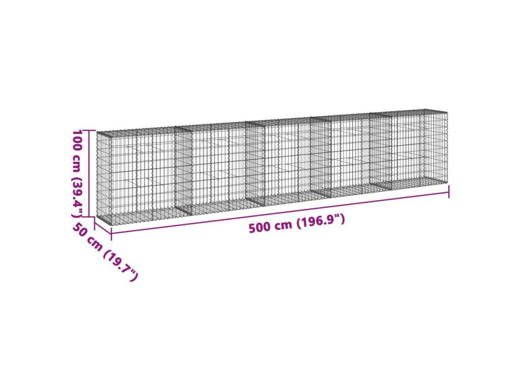 Gabionový koš s víkem 500 x 50 x 100 cm pozinkované železo 3295146