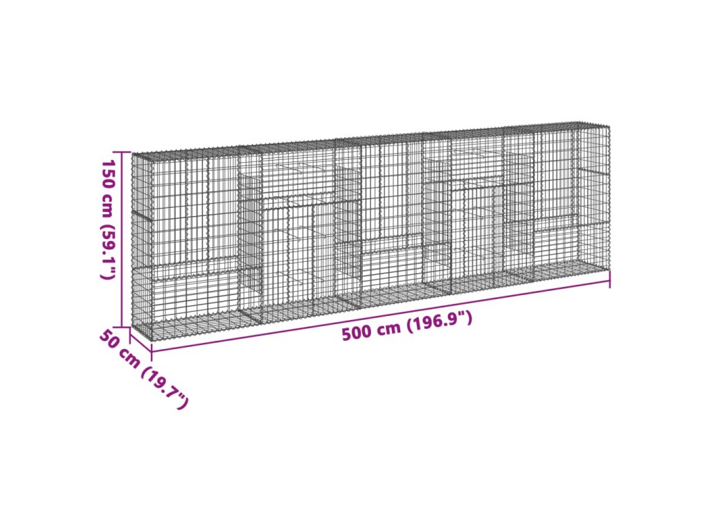 Gabionový koš s víkem 500 x 50 x 150 cm pozinkované železo 3295158