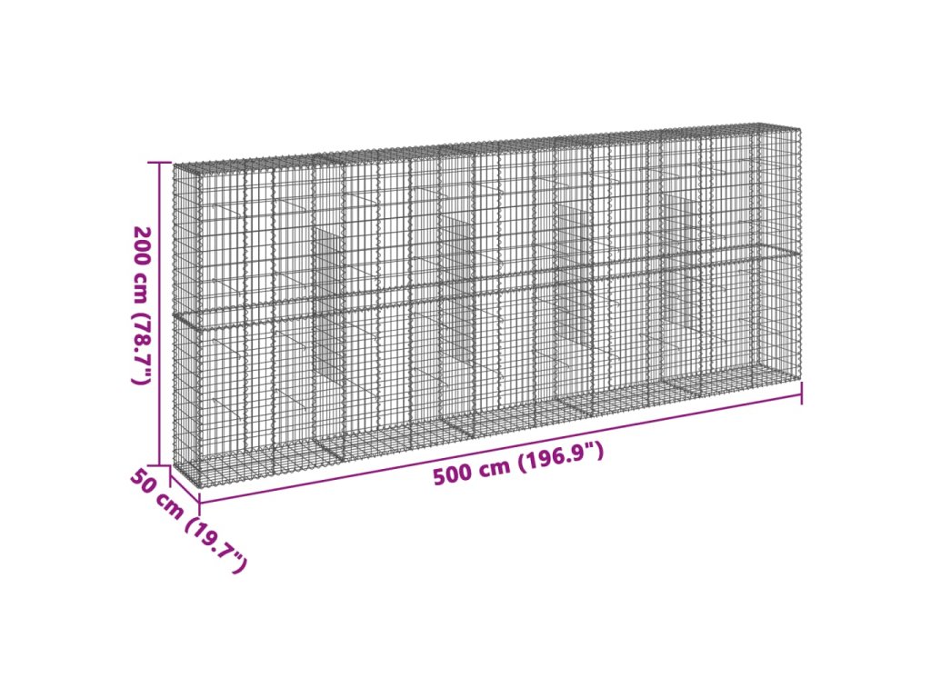 Gabionový koš s víkem 500 x 50 x 200 cm pozinkované železo 3295170