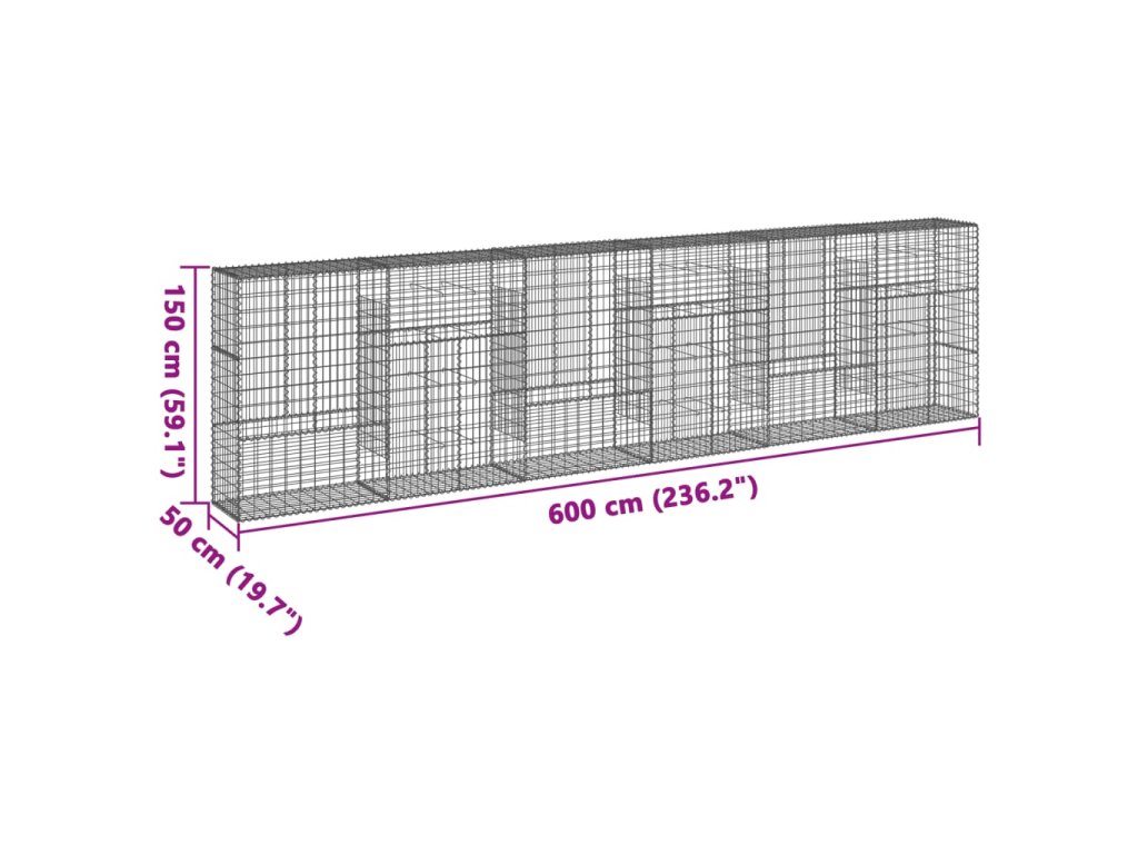 Gabionový koš s víkem 600 x 50 x 150 cm pozinkované železo 3295159