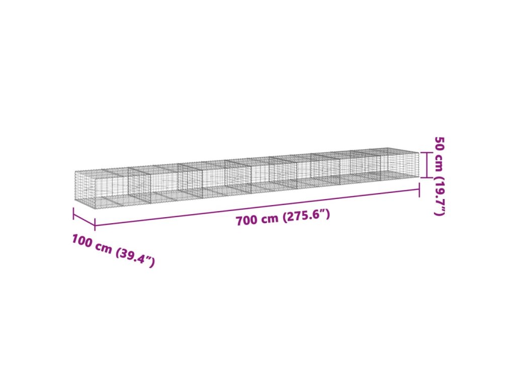 Gabionový koš s víkem 700 x 100 x 50 cm pozinkované železo 3295184