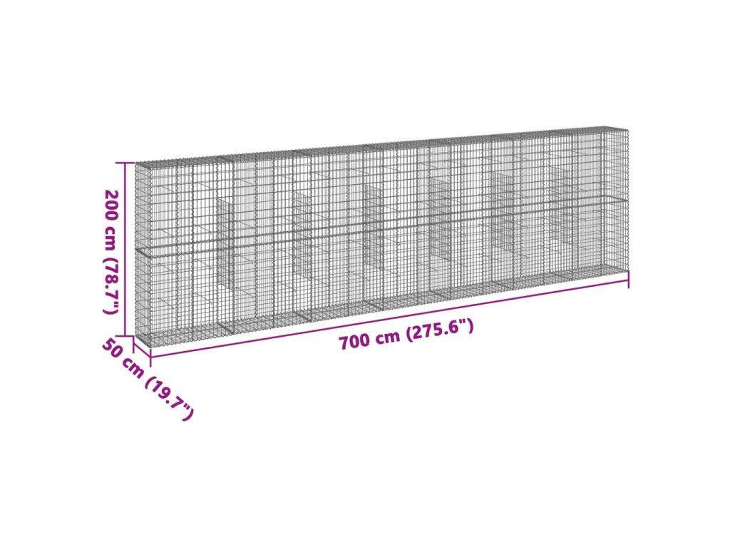 Gabionový koš s víkem 700 x 50 x 200 cm pozinkované železo 3295172