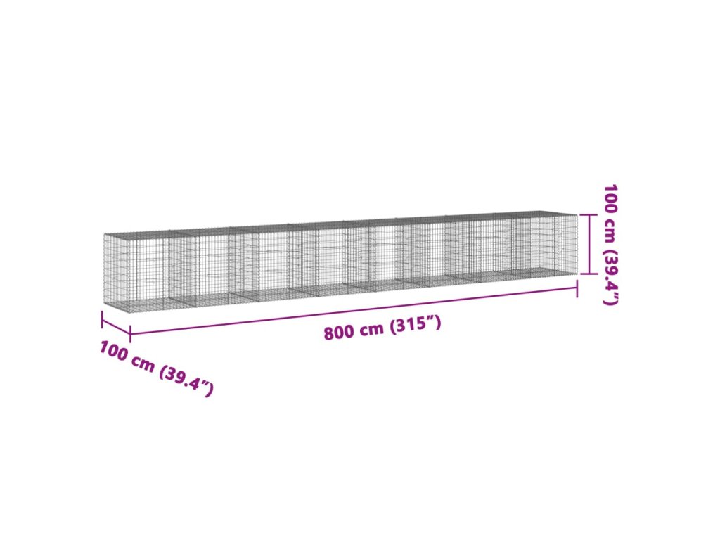 Gabionový koš s víkem 800 x 100 x 100 cm pozinkované železo 3295204