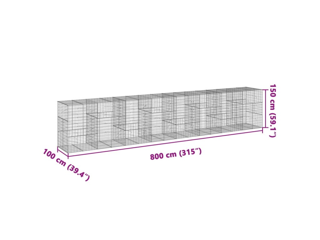 Gabionový koš s víkem 800 x 100 x 150 cm pozinkované železo 3295220