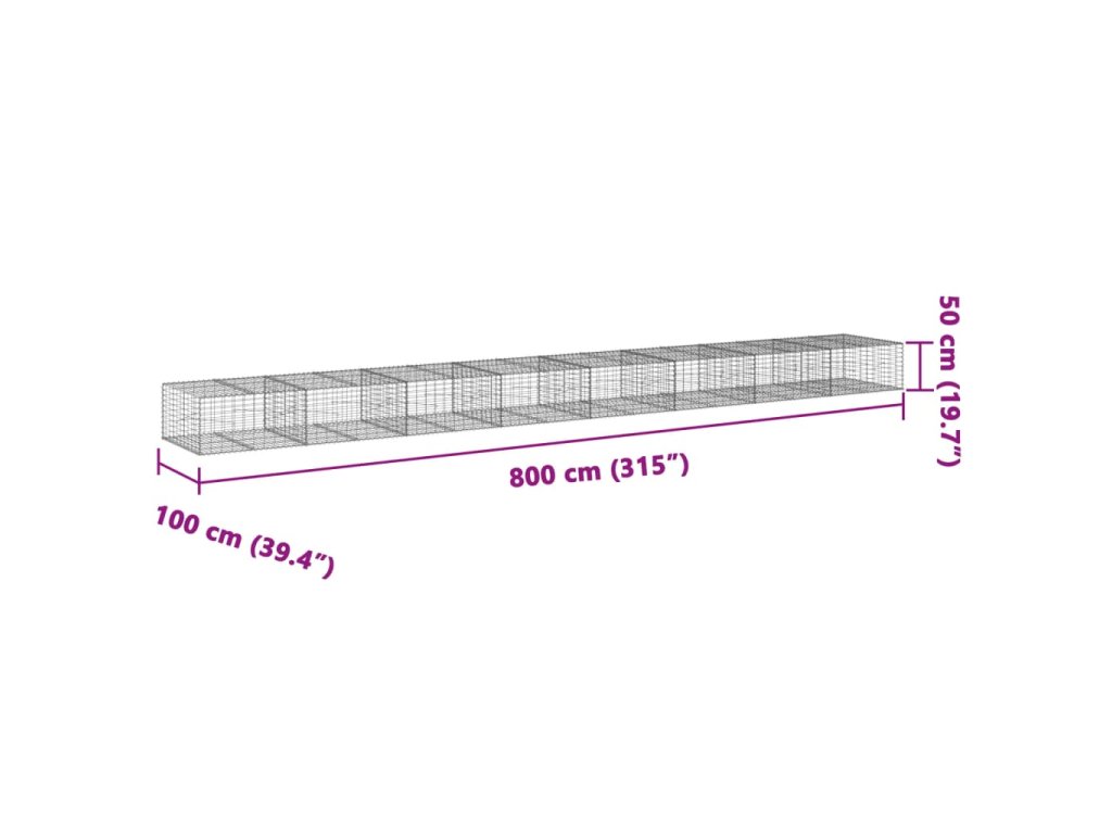 Gabionový koš s víkem 800 x 100 x 50 cm pozinkované železo 3295185