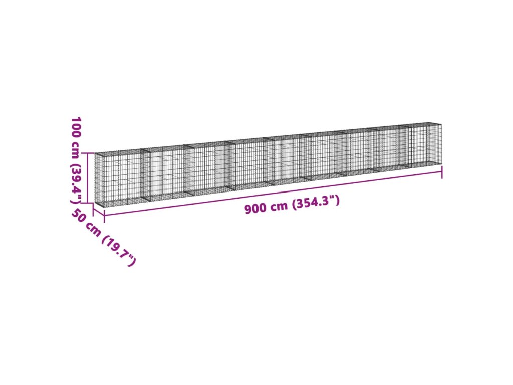 Gabionový koš s víkem 900 x 50 x 100 cm pozinkované železo 3295150