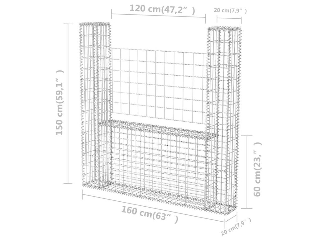Gabionový koš ve tvaru U pozinkovaná ocel 160 x 20 x 150 cm 142545