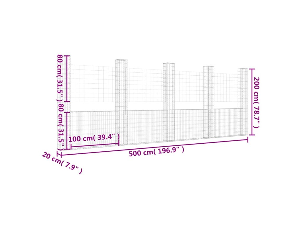 Gabionový koš ve tvaru U s 5 sloupky železo 500 x 20 x 200 cm 151292