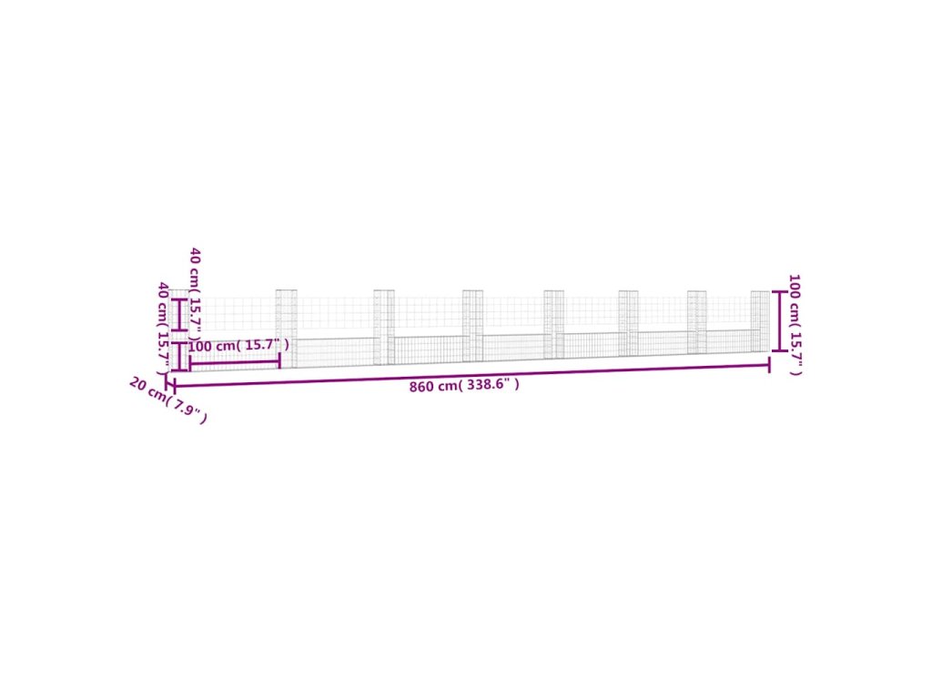 Gabion se sloupky, vyrobený z nerezavějícího železa odolného vůči povětrnostním vlivům, je velmi stabilní a odolný. Síťová mřížka je tvořena vodorovnými a svislými dráty, které jsou ve všech spojích svařené. Díky drátu o průměru 3,5 mm je gabion velmi robustní. Gabionová stěna je určená k vyplnění kameny nebo kamennou drtí pro rychlou výstavbu. Tento gabion je ideální pro zahradní projekty a ve vašem venkovním obytném prostoru nepochybně upoutá pozornost.