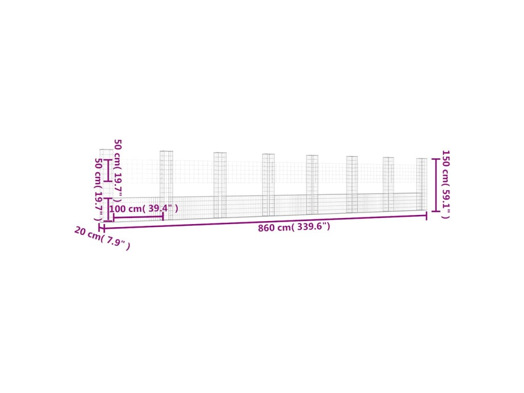 Gabionový koš ve tvaru U s 8 sloupky železo 860 x 20 x 150 cm 151288