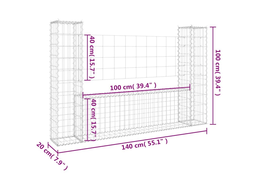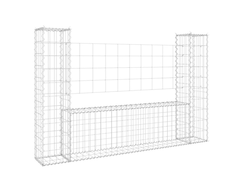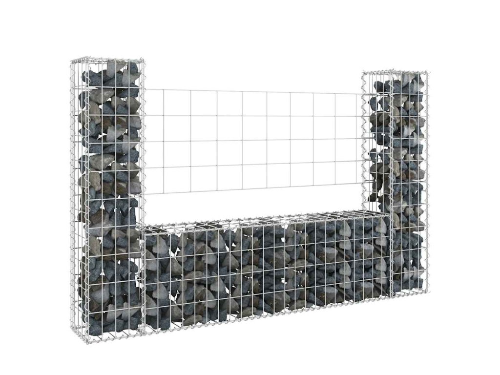 Gabionový koš ve tvaru U se 2 sloupky železo 140 x 20 x 100 cm 151275