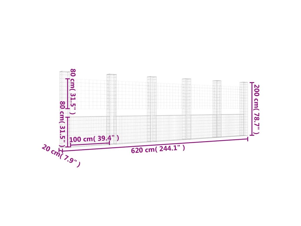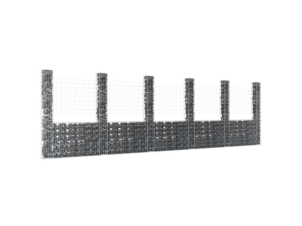 Gabionový koš ve tvaru U se 6 sloupky železo 620 x 20 x 200 cm 151293