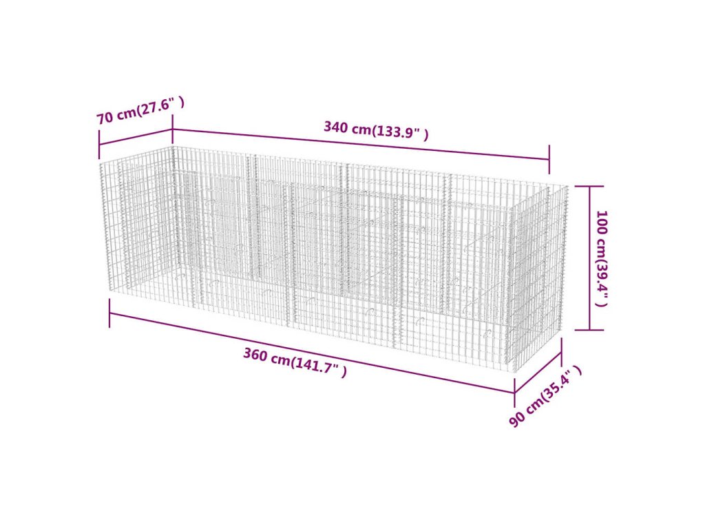 Gabionový vyvýšený záhon ocel 360 x 90 x 100 cm 142553