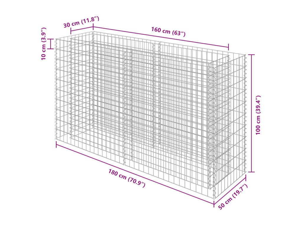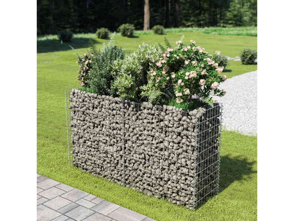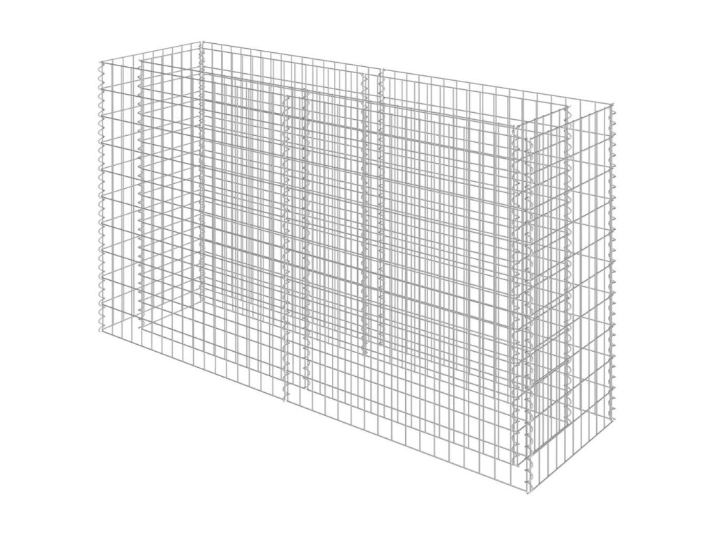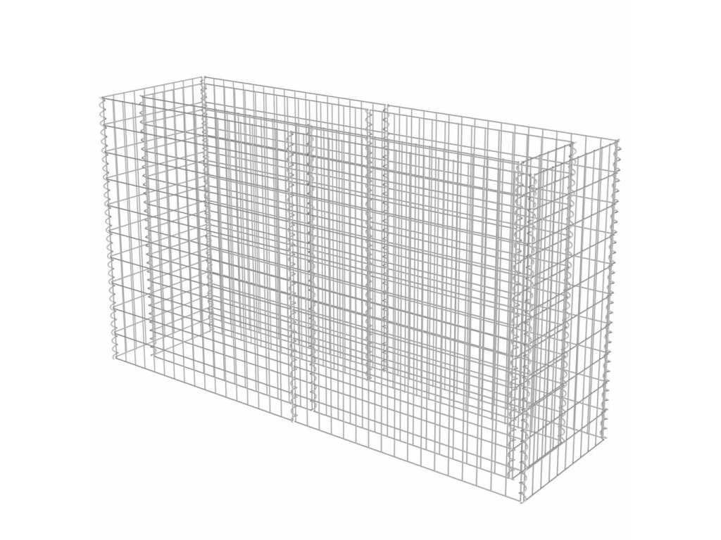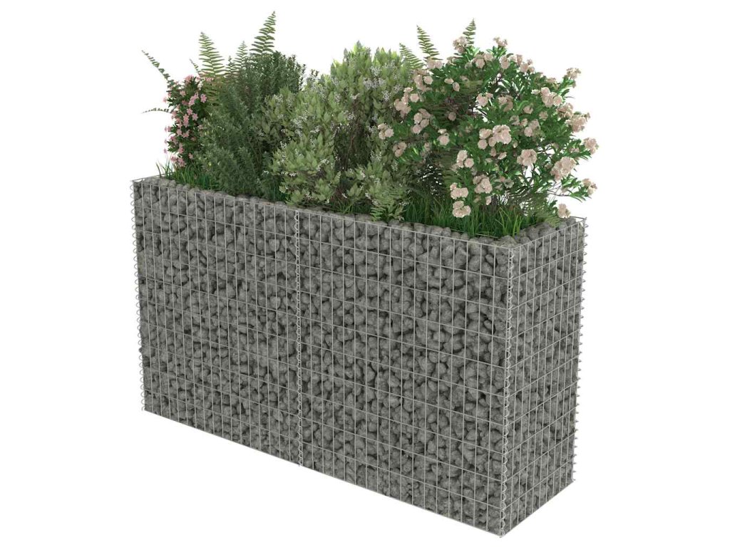 Robustní gabion je určen k tomu, aby byl naplněn kameny nebo štěrkem. Je vyrobený z nerezavějící pozinkované oceli, která nepodléhá povětrnostním vlivům, takže vysoký záhon je velmi stabilní a odolný. Síťová mřížka je tvořená svislými a vodorovnými dráty, které jsou ve všech spojích svařené, aby se tak zajistila mimořádná pevnost.