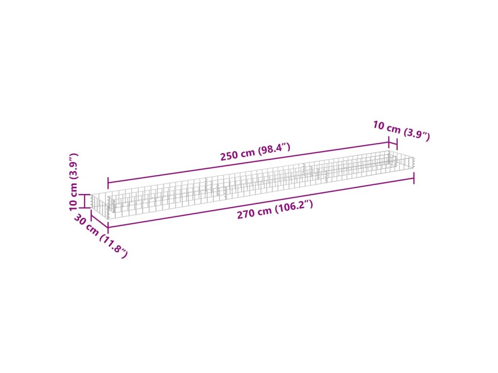Gabionový vyvýšený záhon pozinkovaná ocel 270 x 30 x 10 cm 145636