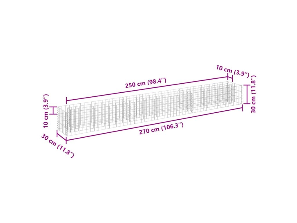 Gabionový vyvýšený záhon pozinkovaná ocel 270 x 30 x 30 cm 145637