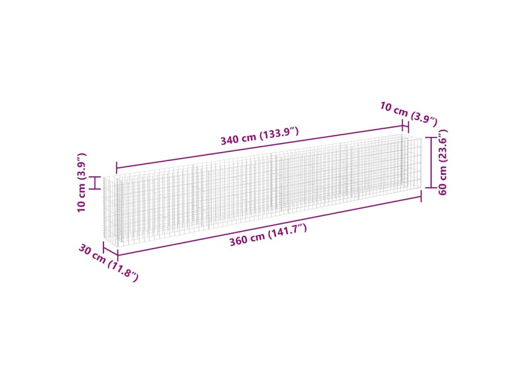 Gabionový vyvýšený záhon pozinkovaná ocel 360 x 30 x 60 cm 145642