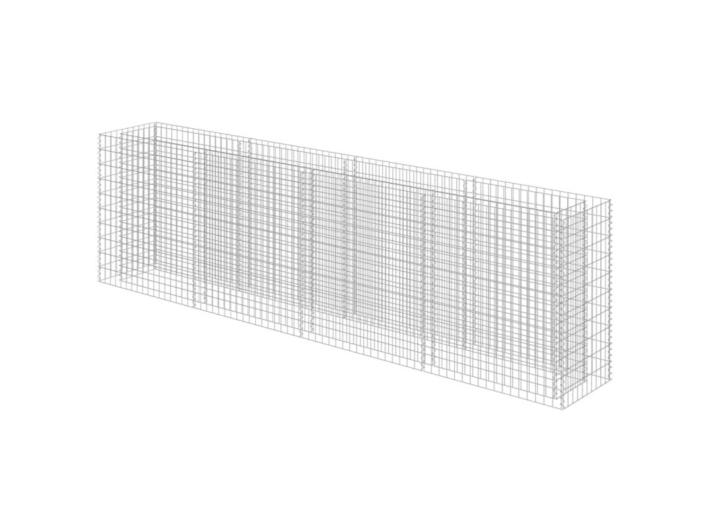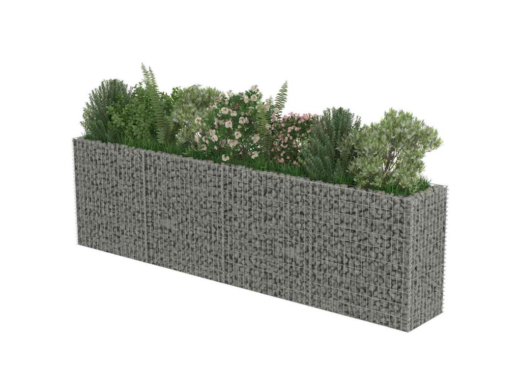 Robustní gabion je určen k tomu, aby byl naplněn kameny nebo štěrkem. Je vyrobený z nerezavějící pozinkované oceli, která nepodléhá povětrnostním vlivům, takže vysoký záhon je velmi stabilní a odolný. Síťová mřížka je tvořená svislými a vodorovnými dráty, které jsou ve všech spojích svařené, aby se tak zajistila mimořádná pevnost.
