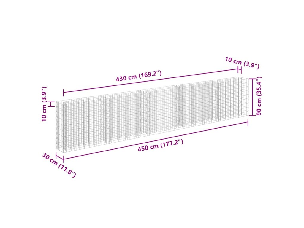 Gabionový vyvýšený záhon pozinkovaná ocel 450 x 30 x 90 cm 145647