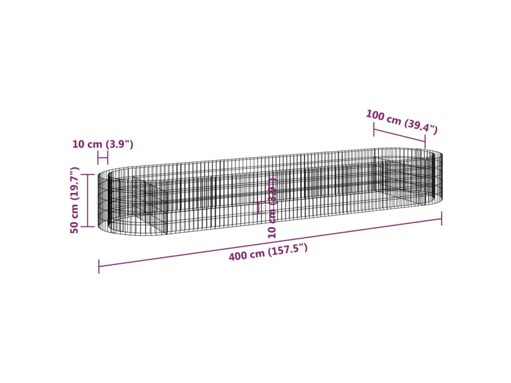 Gabionový vyvýšený záhon pozinkované železo 400 x 100 x 50 cm 152042