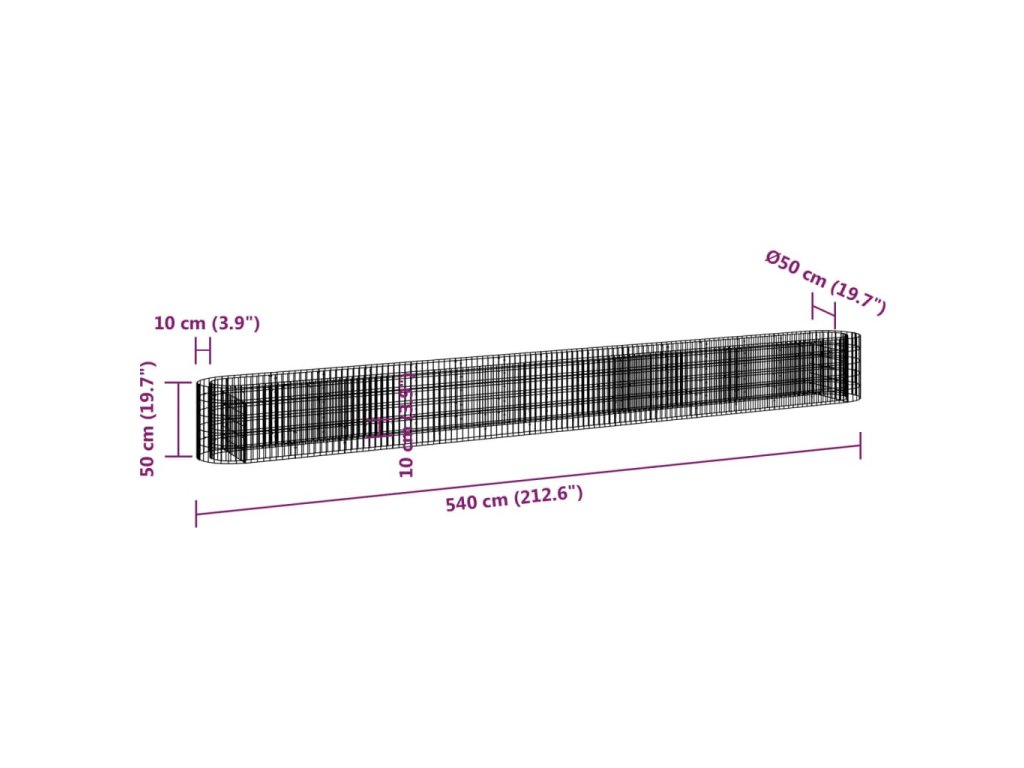 Gabionový vyvýšený záhon pozinkované železo 540 x 50 x 50 cm 152030
