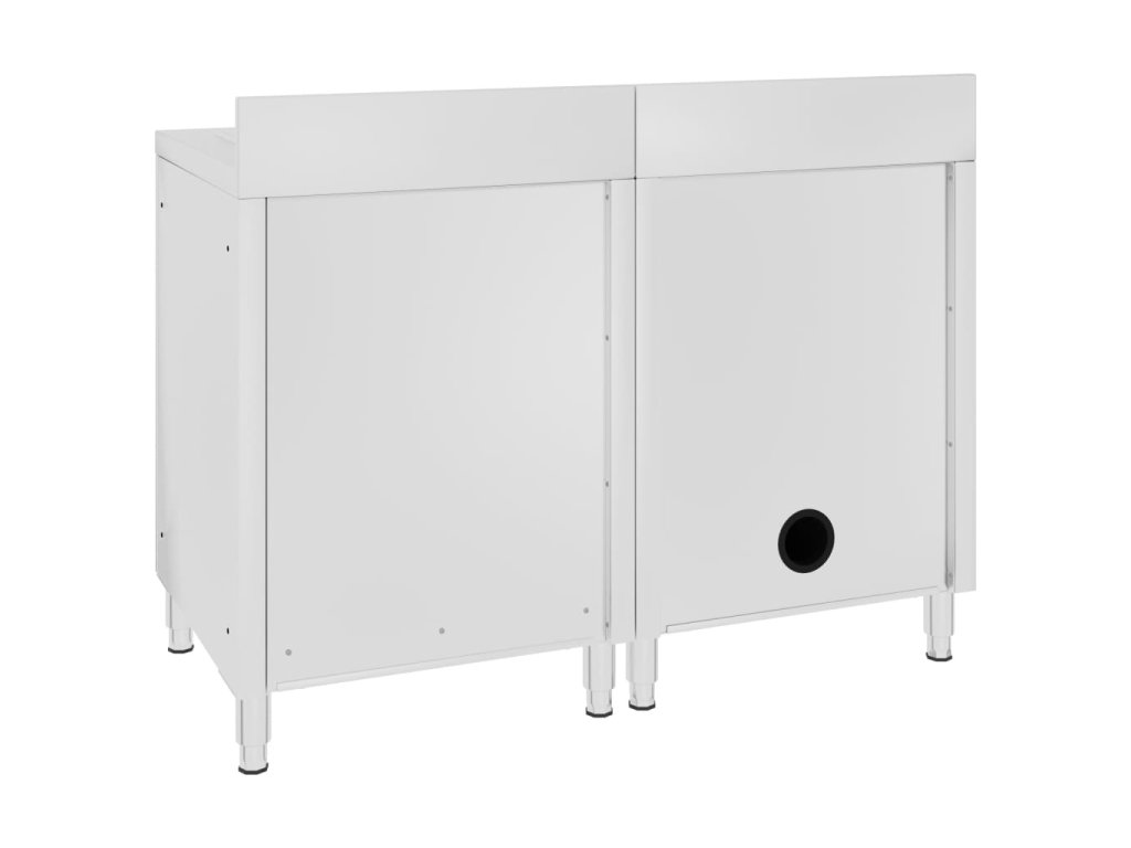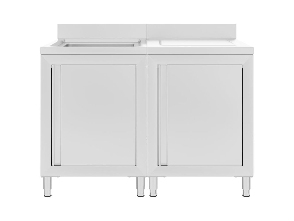 Tato skříňka je vyrobená z kvalitní nerezové oceli a je robustní, antikorozní a snadno se čistí. Spodní skříňka poskytuje dostatek úložného prostoru pro úklidové vybavení a příslušenství. Horní část odkapávače umožňuje příborům, talířům a hrncům oschnout, aniž by na pultu zůstávaly nevzhledné kaluže. Nastavitelné nožičky umožňují vyrovnat skříňku i na vodorovné ploše. Součástí skříňky je 10 cm vysoký zadní lem.