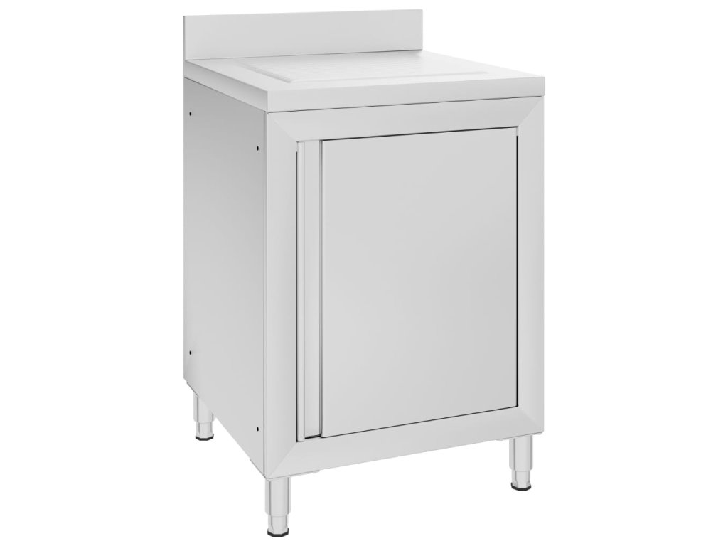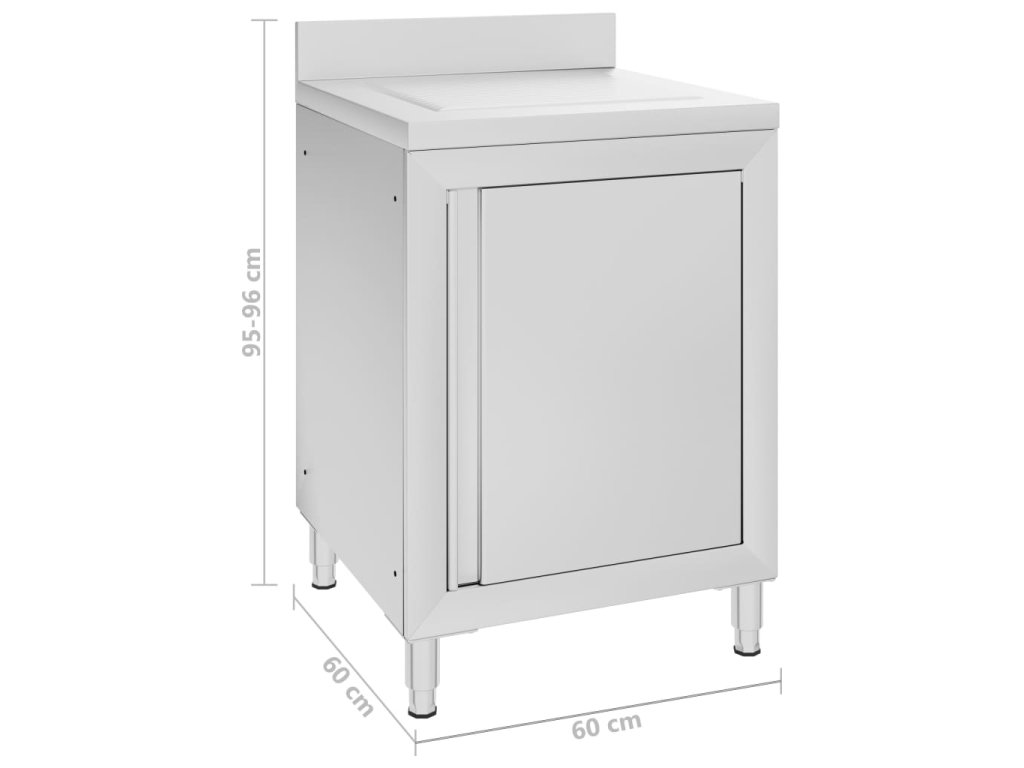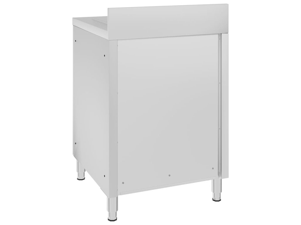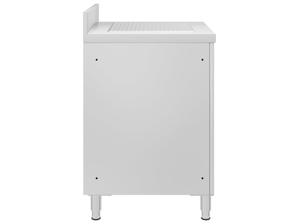 Tato skříňka je vyrobená z kvalitní nerezové oceli a je robustní, antikorozní a snadno se čistí. Spodní skříňka poskytuje dostatek úložného prostoru pro úklidové vybavení a příslušenství. Horní část odkapávače umožňuje příborům, talířům a hrncům oschnout, aniž by na pultu zůstávaly nevzhledné kaluže. Nastavitelné nožičky umožňují vyrovnat skříňku i na vodorovné ploše. Součástí skříňky je 10 cm vysoký zadní lem.