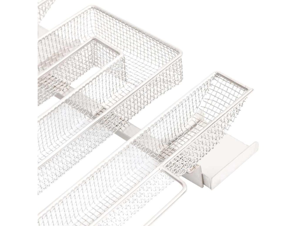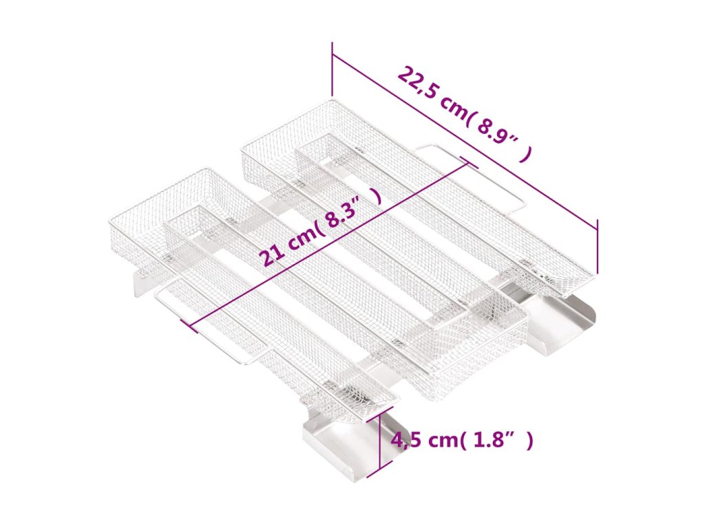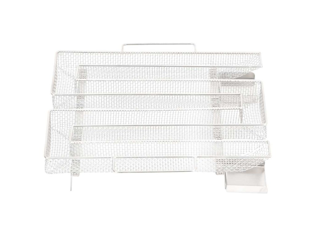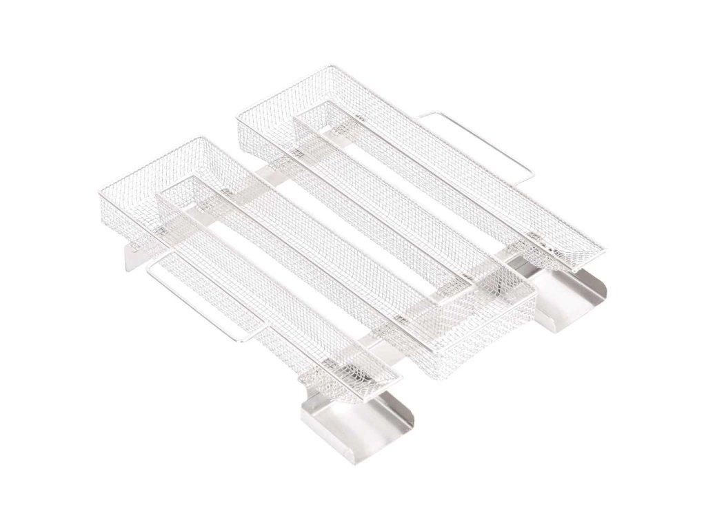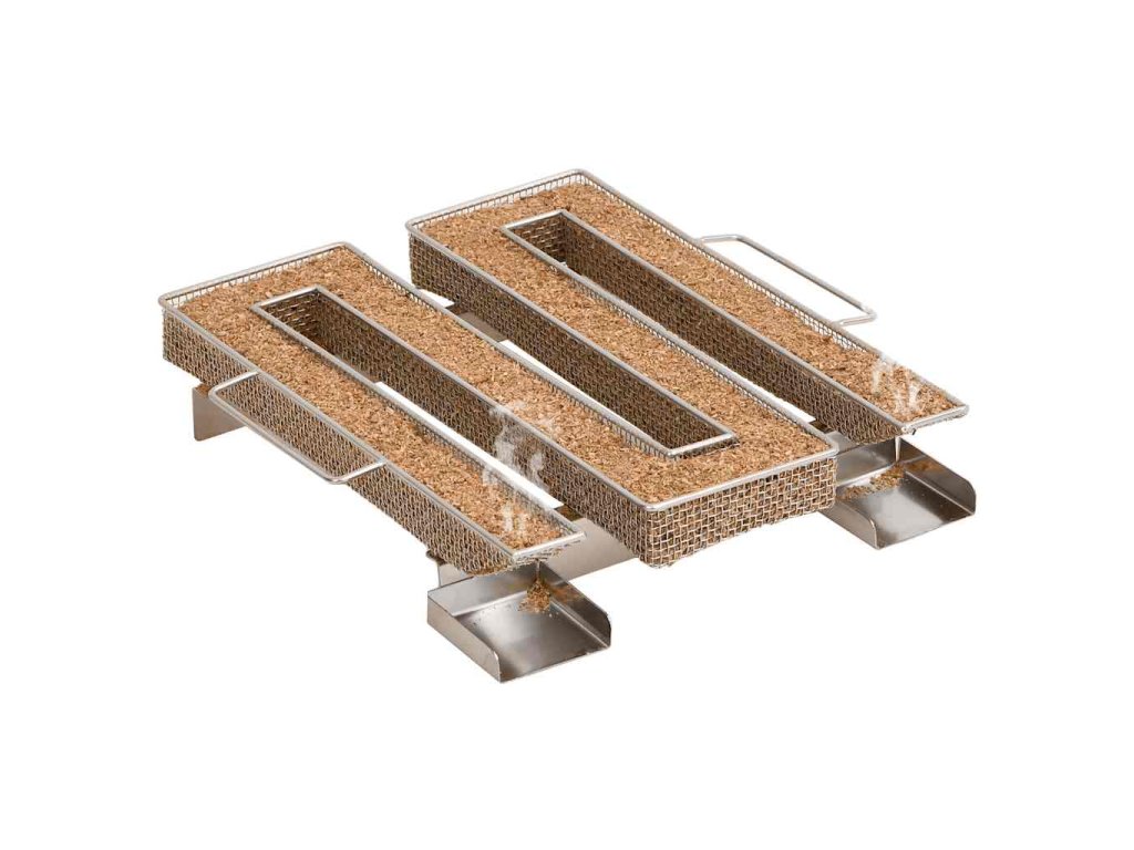 - Pevná mřížková konstrukce: Kompaktní mřížka ve tvaru M umožňuje rovnoměrné a pomalé hoření třísek až po dobu 10 hodin. Délka trvání závisí především na druhu dřeva určeného k uzení. Pro dosažení nejlepších výsledků se doporučuje používat štěpky o velikosti zrn 0,5–2,0 mm.