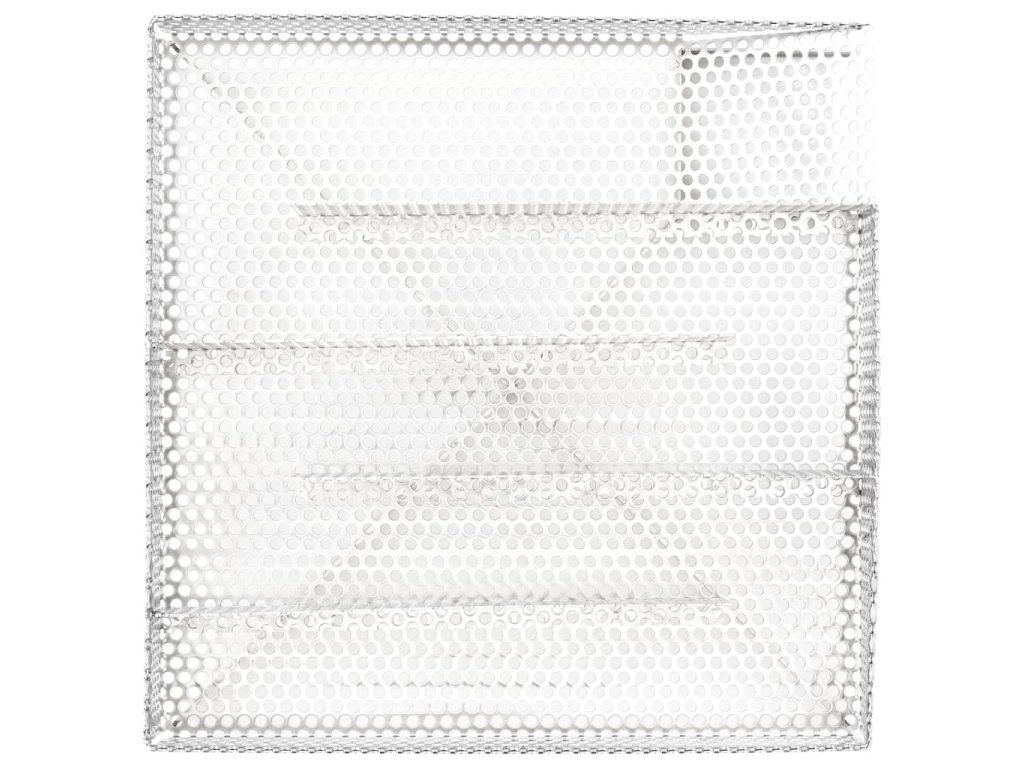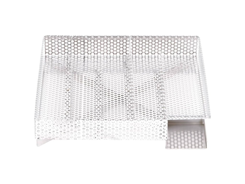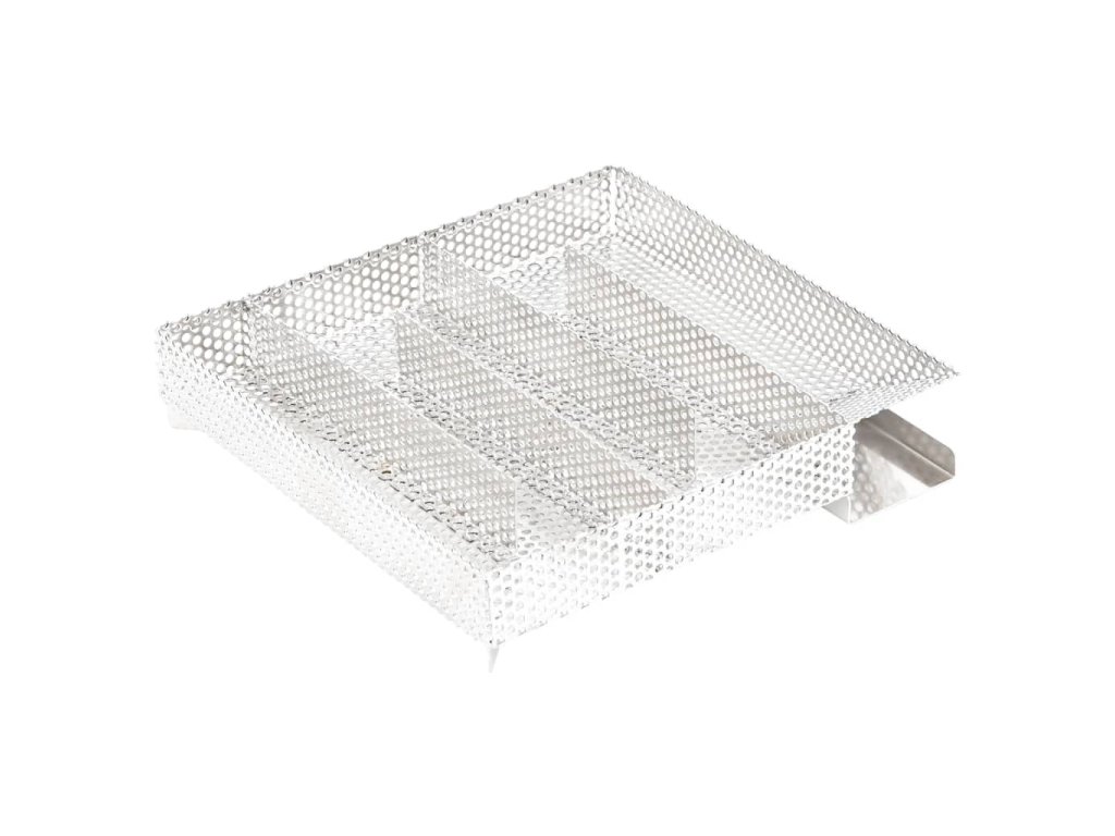 - Pevná mřížková konstrukce: Kompaktní mřížka čtvercového tvaru umožňuje rovnoměrné a pomalé hoření třísek až po dobu 12 hodin. Délka trvání závisí především na druhu dřeva určeného k uzení. Pro dosažení nejlepších výsledků se doporučuje používat štěpky o velikosti zrn 0,5–2,0 mm.