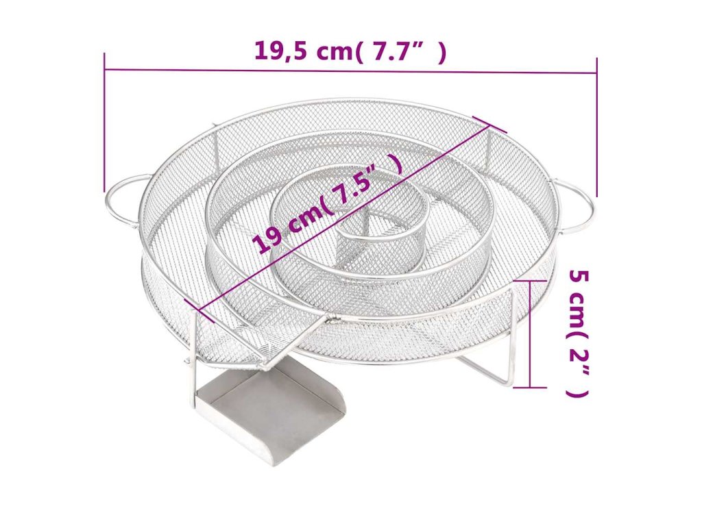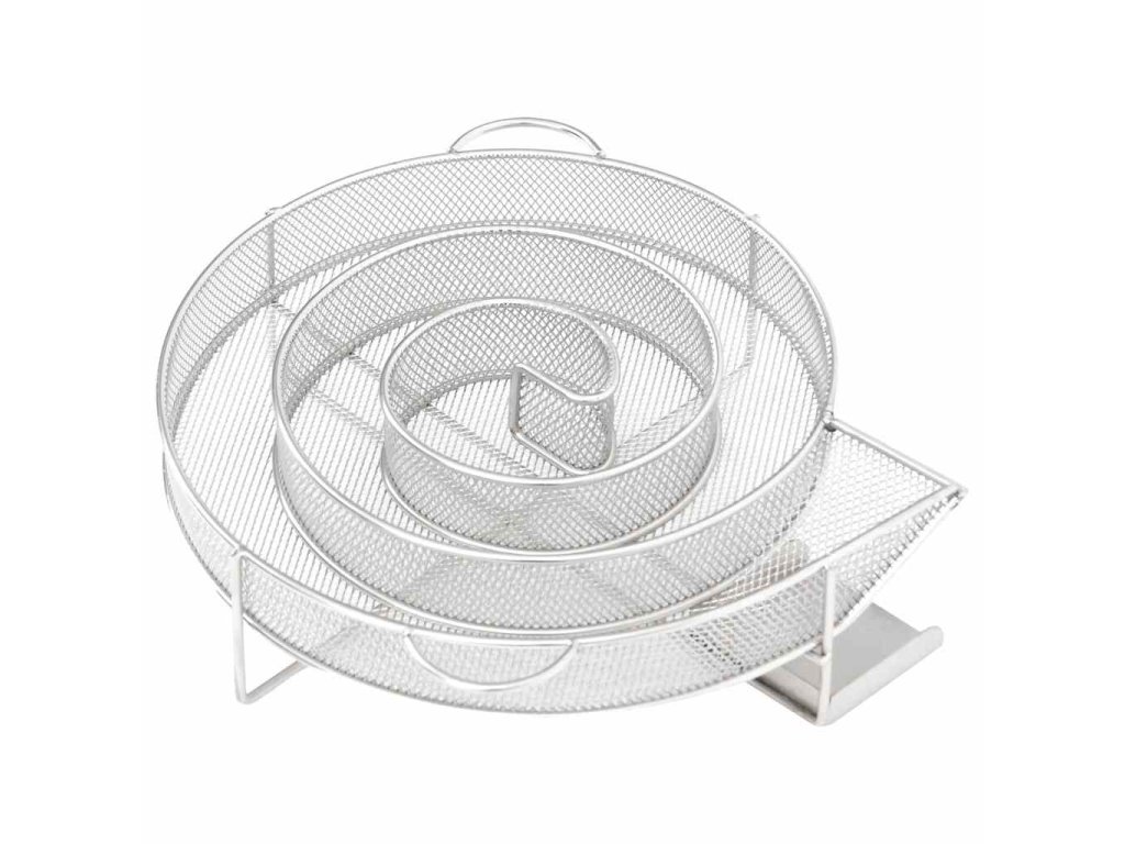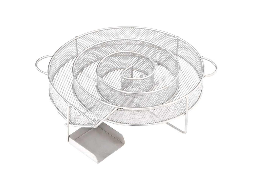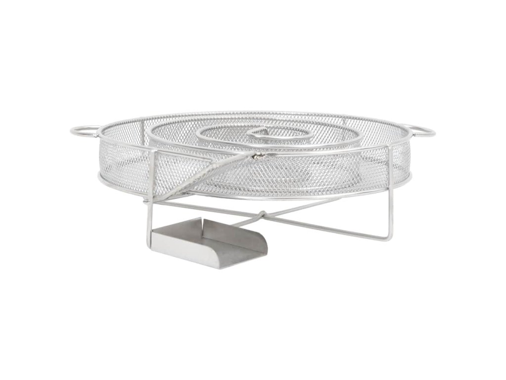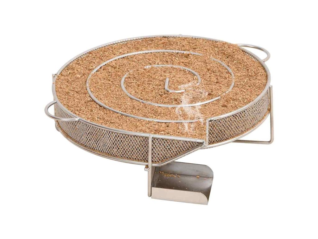 - Pevná mřížková konstrukce: Kompaktní mřížka ve tvaru šneka umožňuje rovnoměrné a pomalé hoření třísek až po dobu 7 hodin. Délka trvání závisí především na druhu dřeva určeného k uzení. Pro dosažení nejlepších výsledků se doporučuje používat štěpky o velikosti zrn 0,5–2,0 mm.