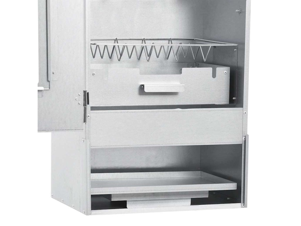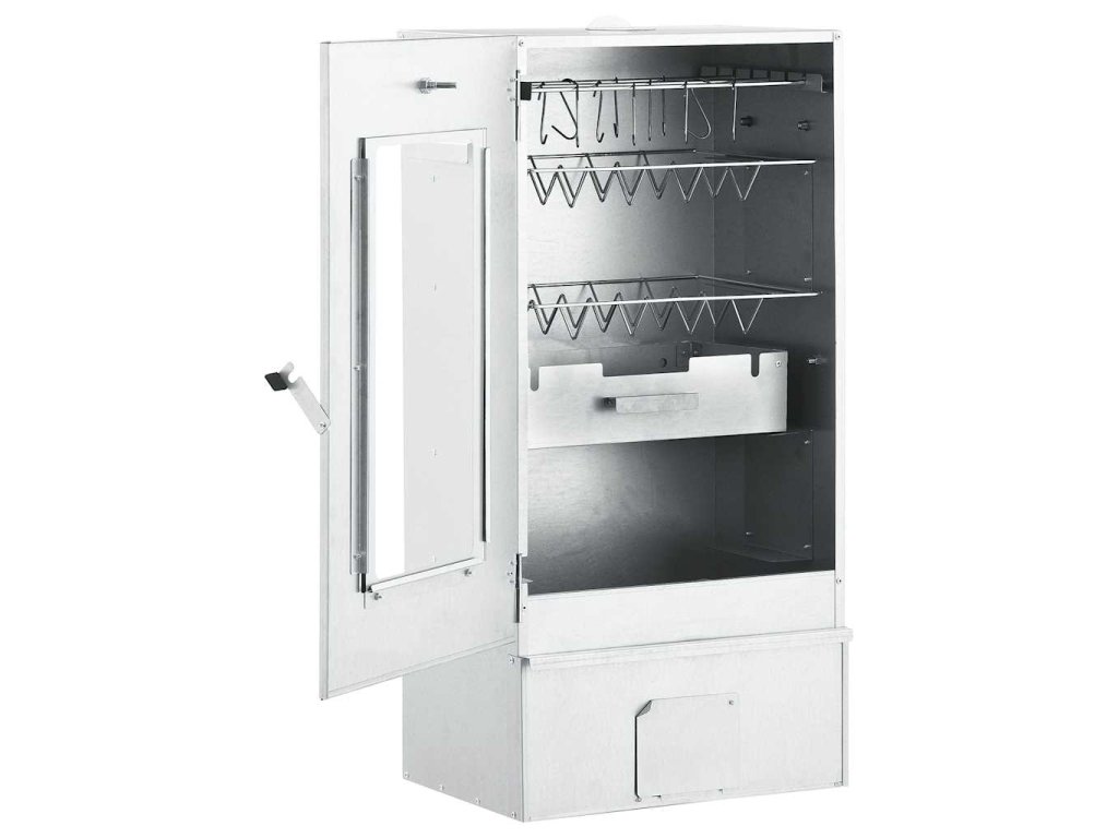 - Dostatek prostoru na uzení: Venkovní udírna poskytuje dostatek prostoru pro uzení masa, ryb, klobás apod. Pomocí přiložených háků ve tvaru písmene S a roštů bude grilování pohodlnější.