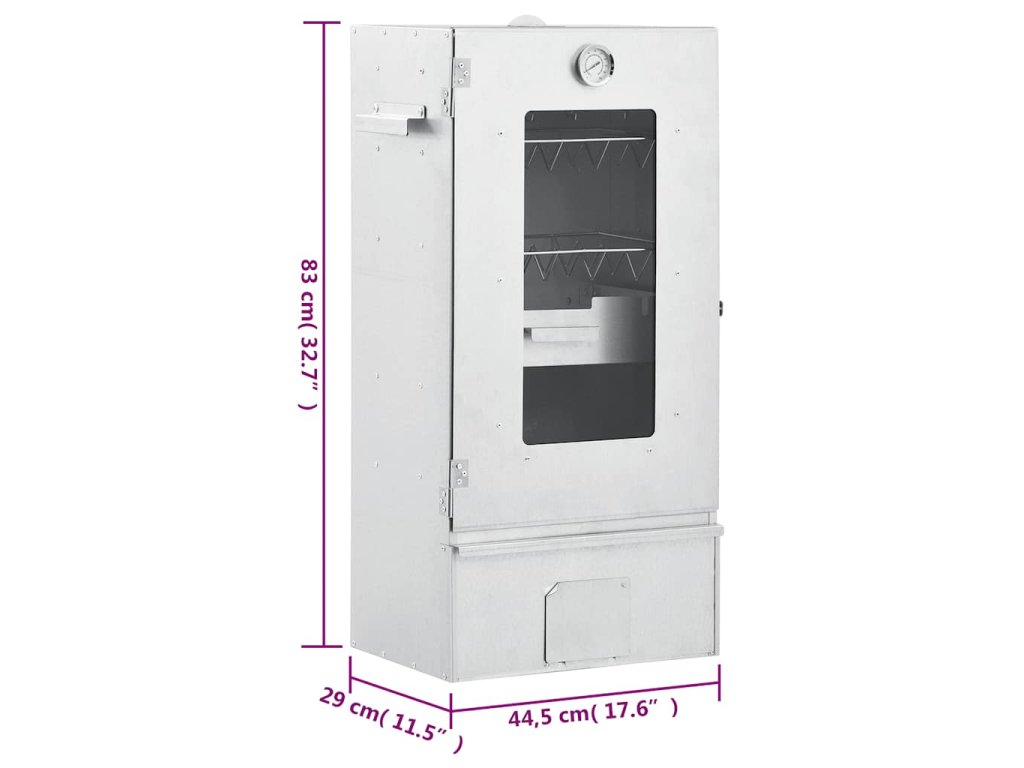 - Indikativní funkce: Udírna je vybavena teploměrem pro kontrolu teploty v komoře. Skrz skleněné okno udírny můžete sledovat pokrm uvnitř a zajistit tak co nejlepší přípravu.