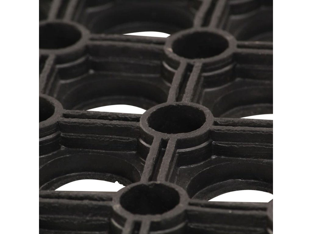 Rohož je možné prostřednictvím konektorů (nejsou součástí balení) snadno spojit s další a vytvářet tak nejrůznější tvary a velikosti. Je vyrobena ze 100% gumy, a výborně tudíž odolává povětrnostním vlivům, je protiskluzová a navíc se snadno čistí.