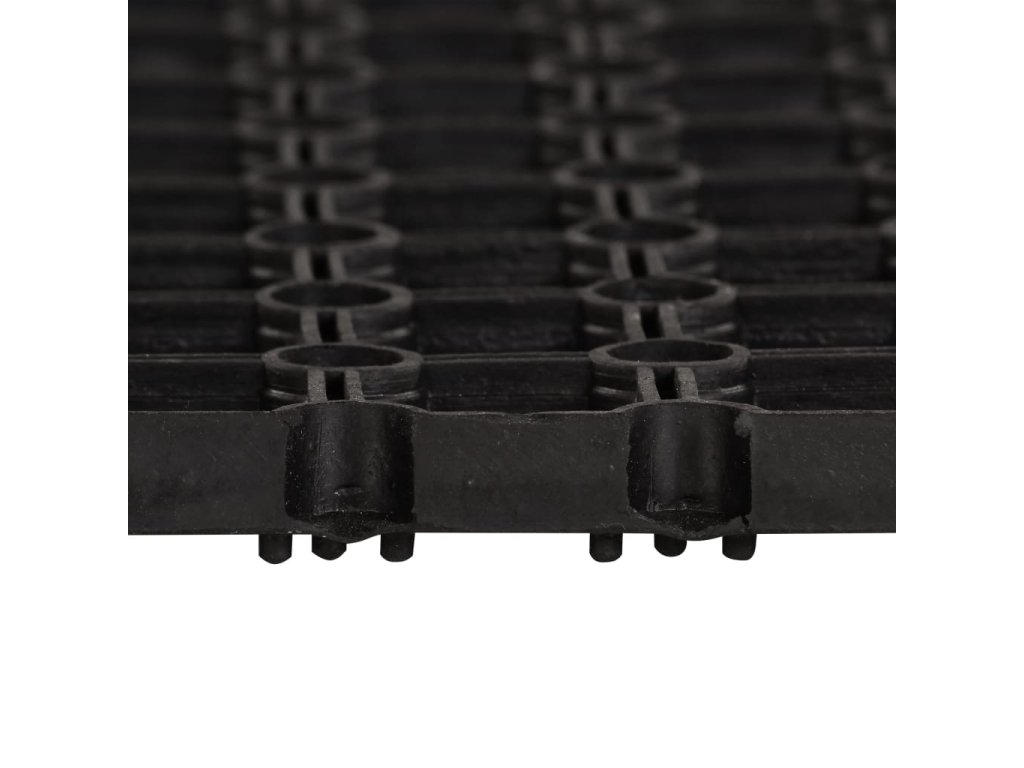 Rohož je možné prostřednictvím konektorů (nejsou součástí balení) snadno spojit s další a vytvářet tak nejrůznější tvary a velikosti. Je vyrobena ze 100% gumy, a výborně tudíž odolává povětrnostním vlivům, je protiskluzová a navíc se snadno čistí.