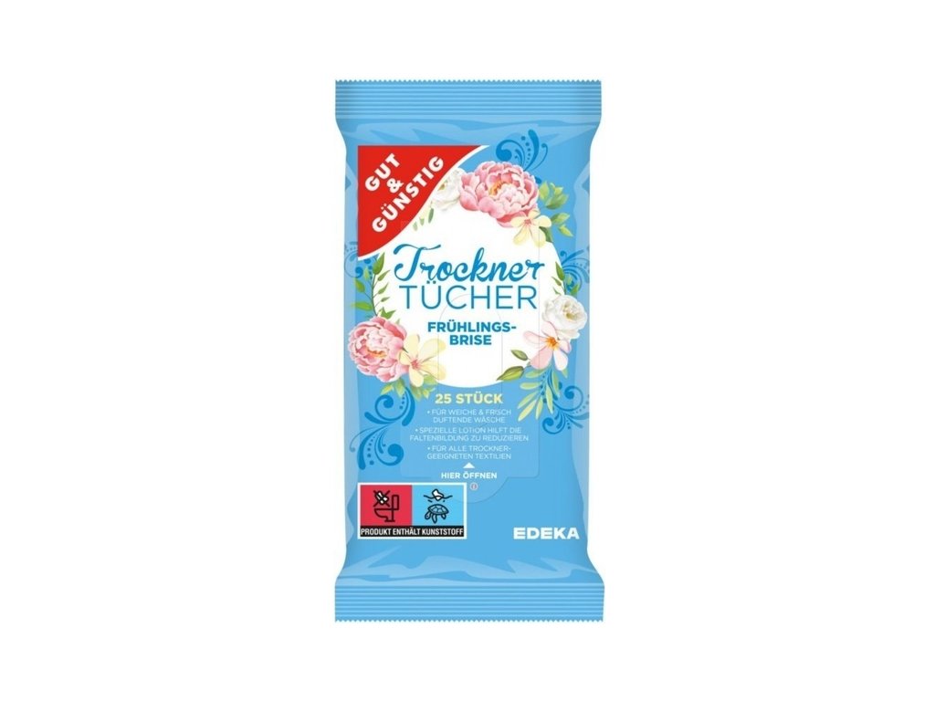 Gut & Gunstig Fruhlingsbrise vlhčené ubrousky do sušičky se svěží vůní rozkvetlých květin.