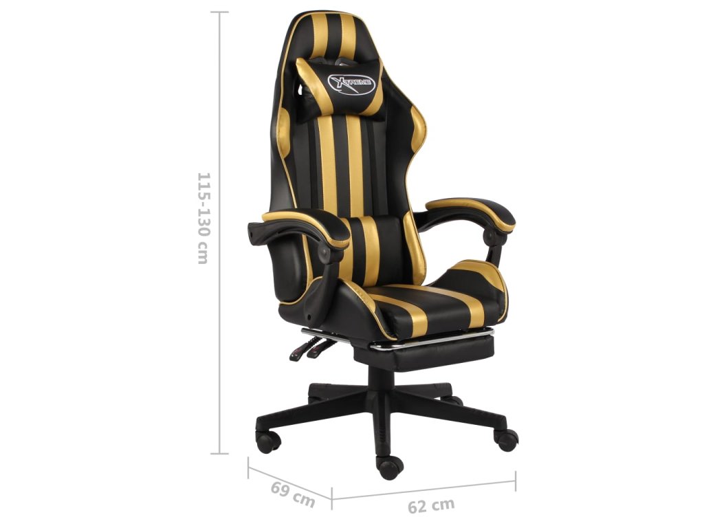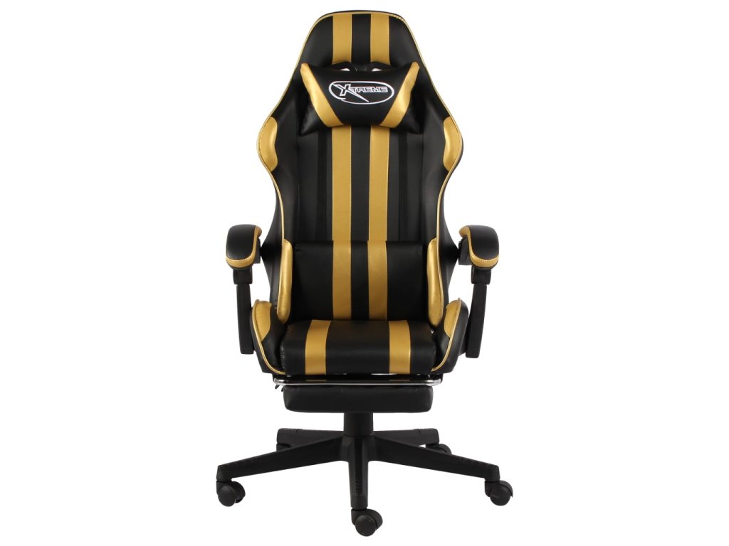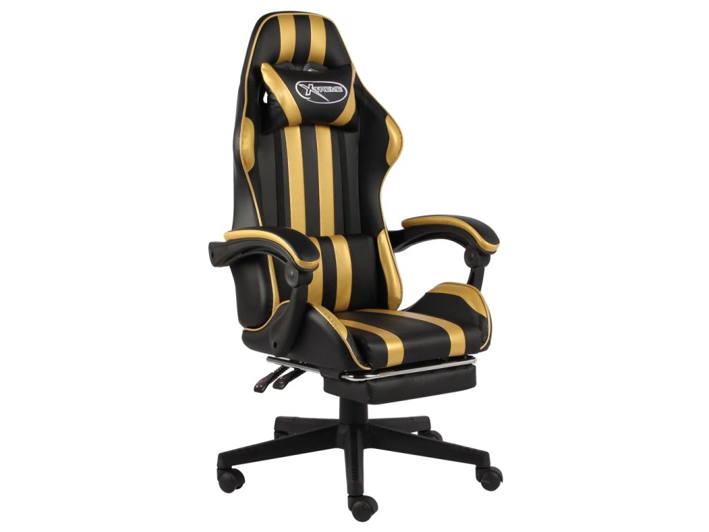 Herní židle s podnožkou černo-zlatá umělá kůže 20528
