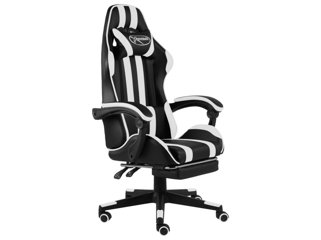 Herní židle s podnožkou černobílá umělá kůže 20531