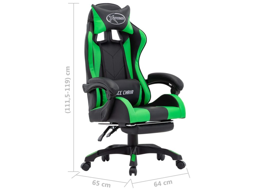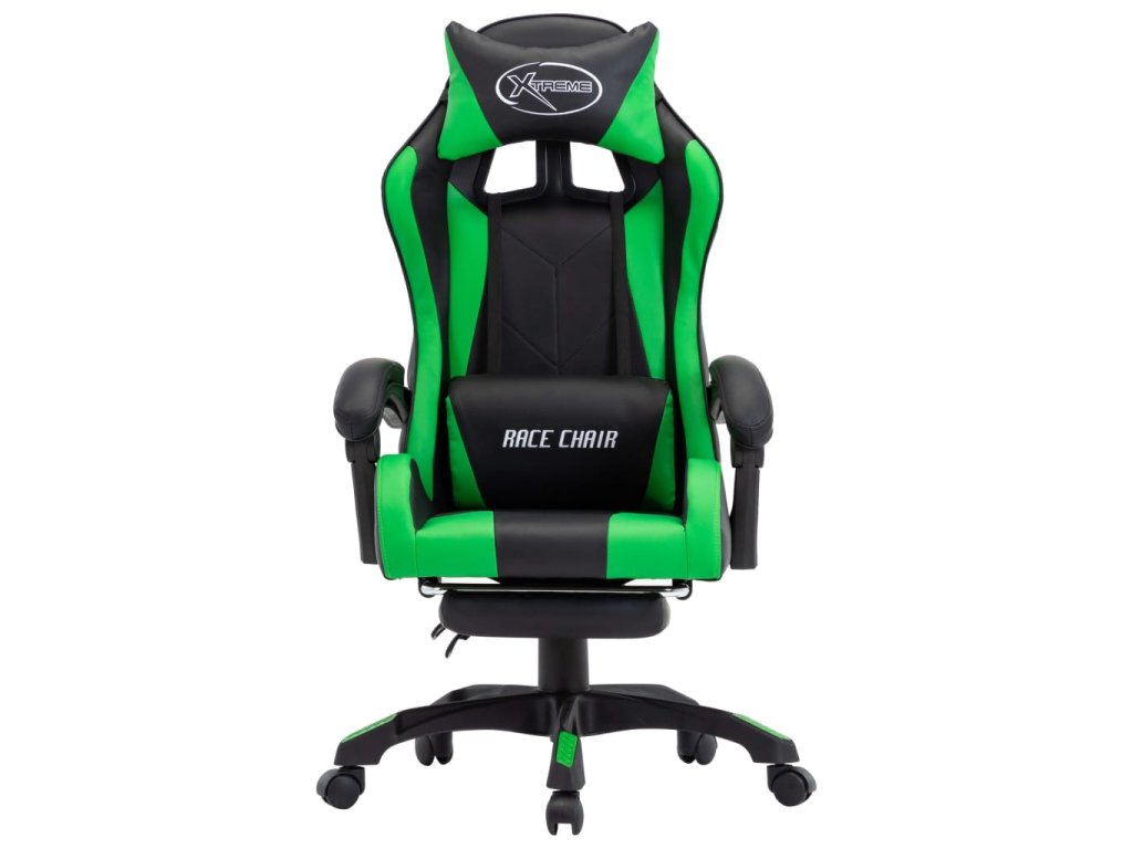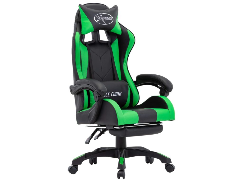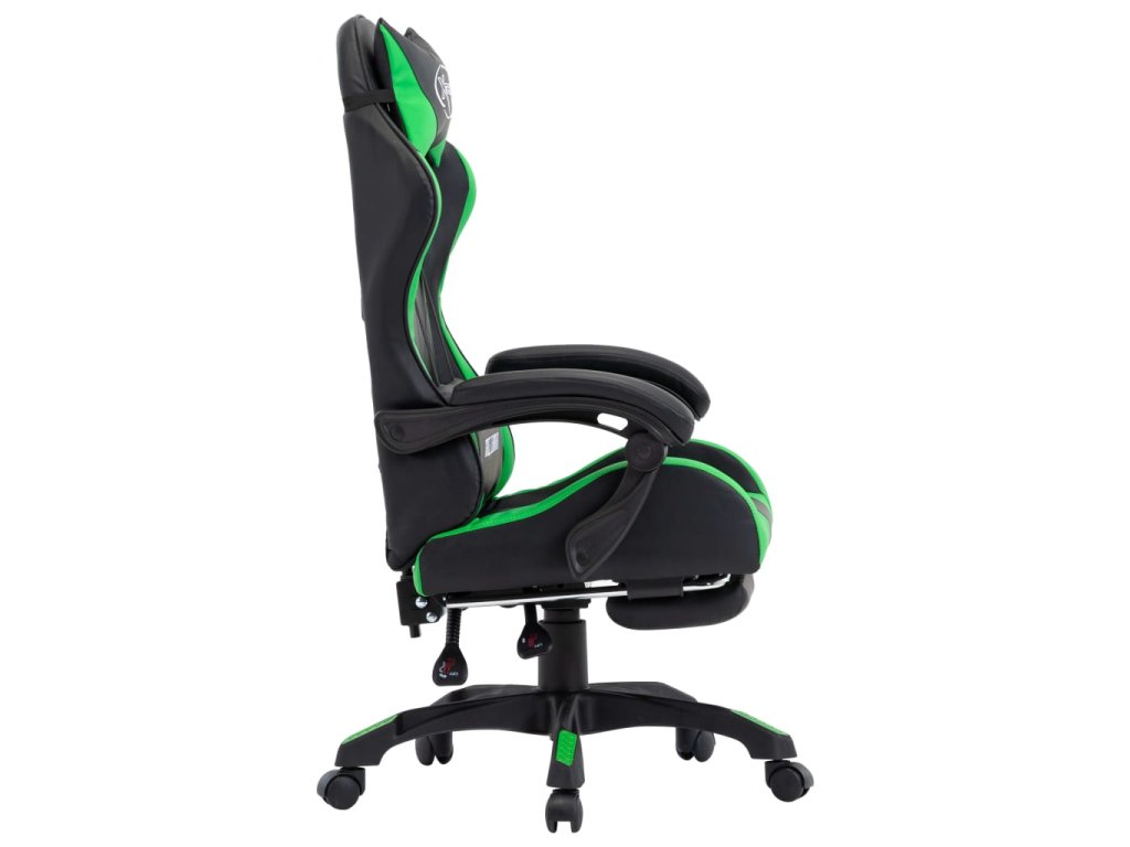 Herní židle s podnožkou zelená a černá umělá kůže 287989