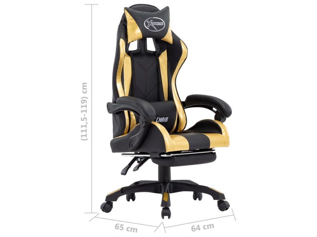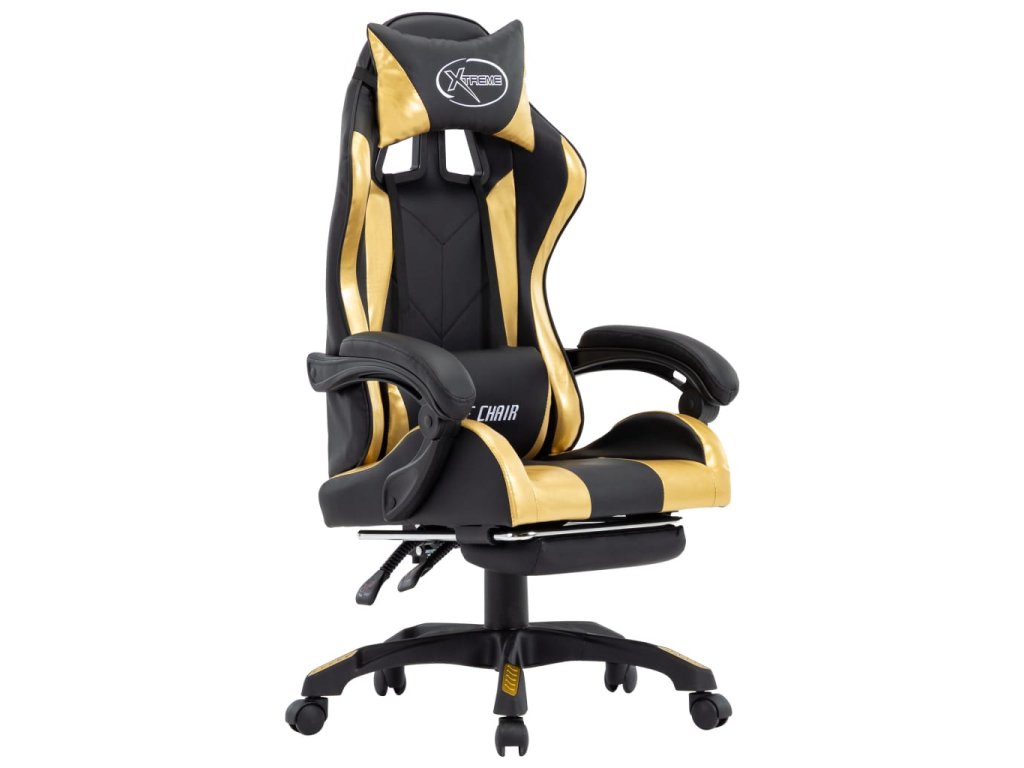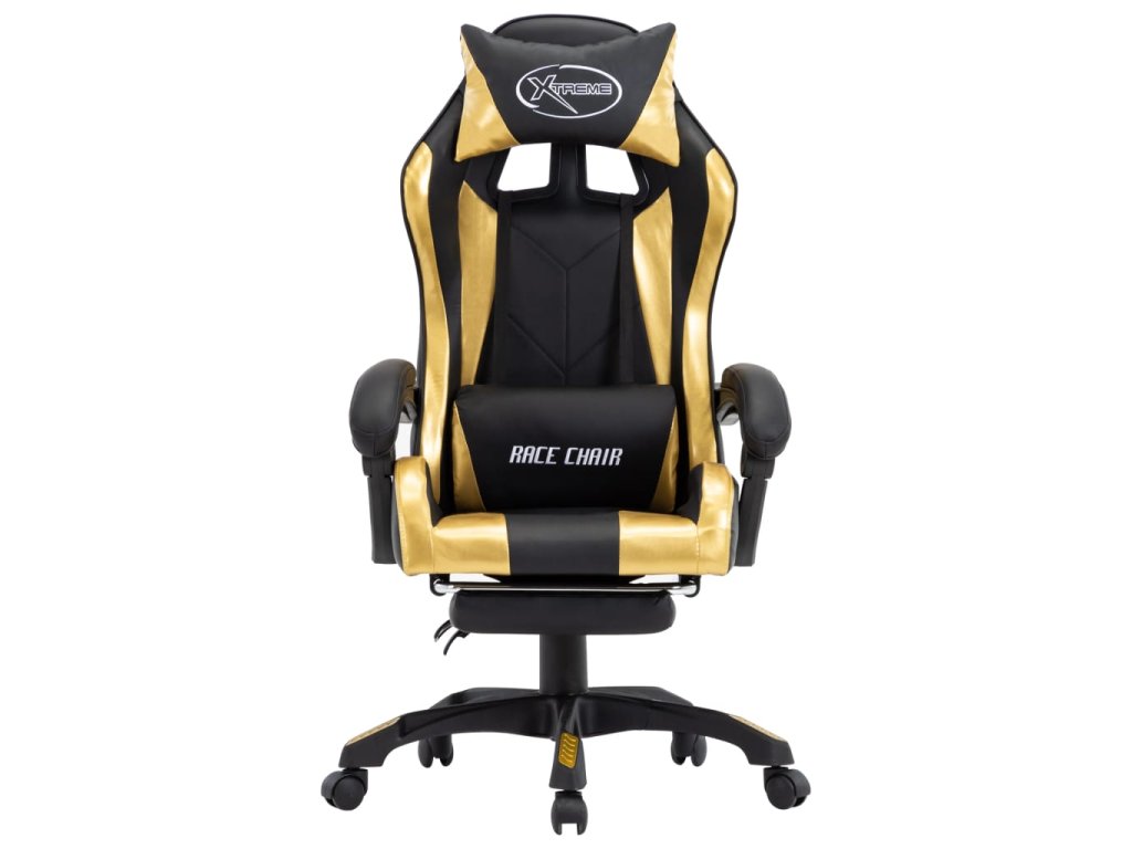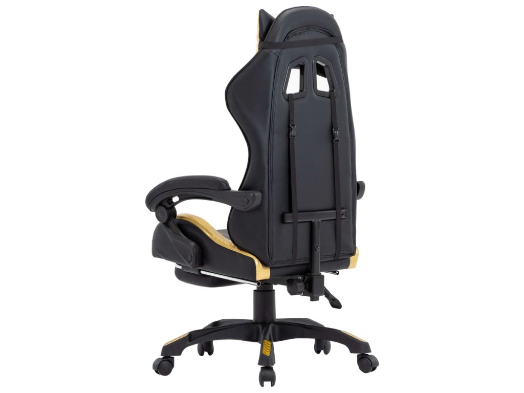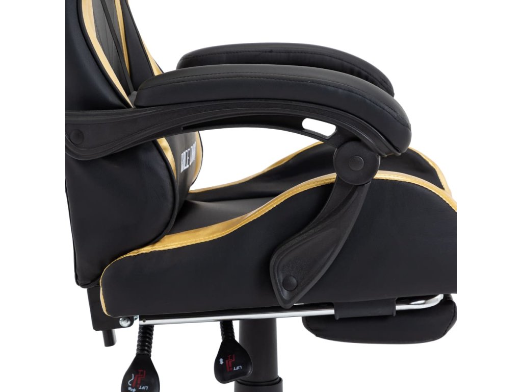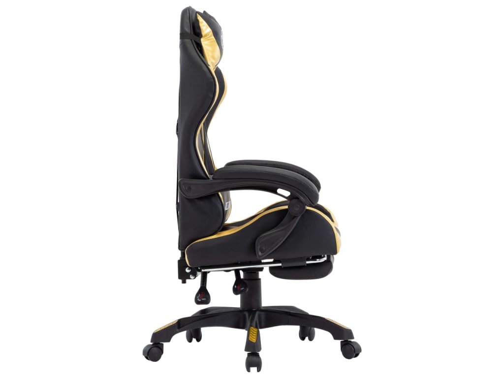 Herní židle s podnožkou zlatá a černá umělá kůže 287988