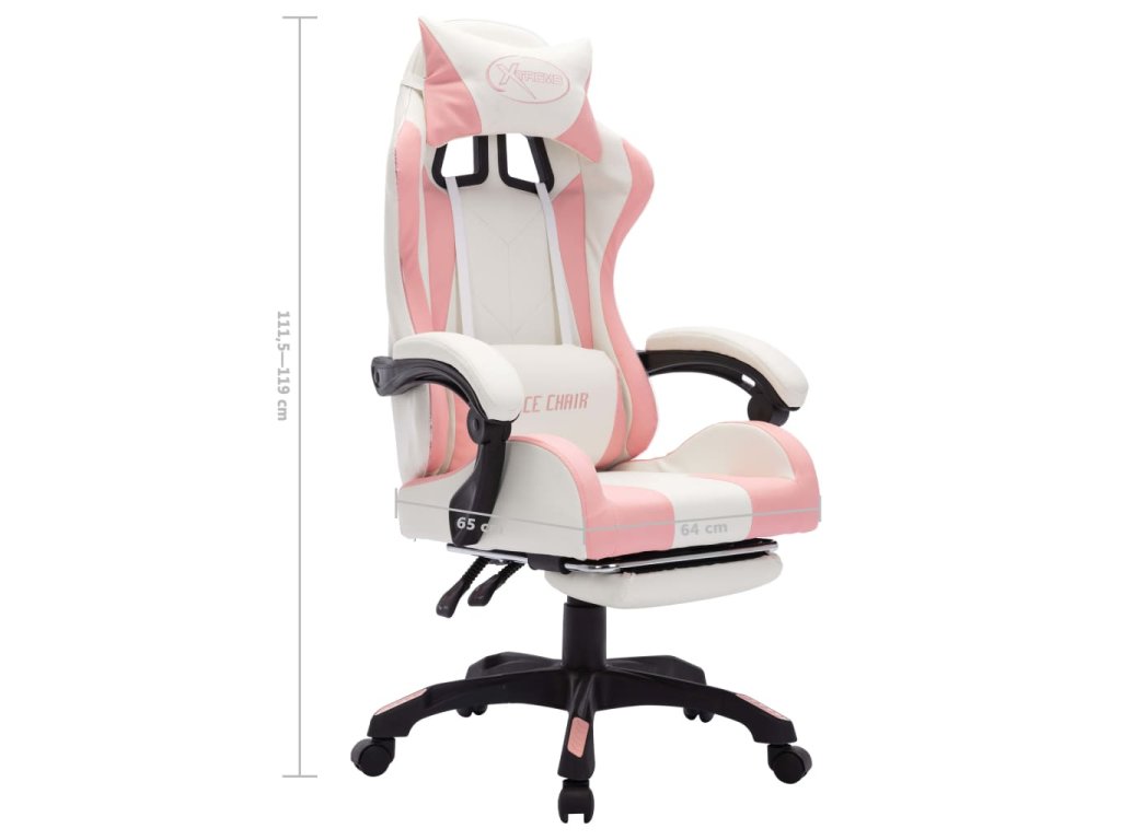 Tato herní židle je čalouněná umělou kůží, která se snadno čistí. Má sklopnou opěrku nohou, kterou lze sklopit pod sedák, kdykoli ji nepoužíváte. Součástí židle je také hustě polstrovaná opěrka hlavy a polštářek pod bedra, která vám nabídnou extra pohodlí pro každý náročný pracovní den. Kancelářská židle je vybavená plynovým zvedacím mechanismem, takže je výškově nastavitelná. Úhel sklopení je také nastavitelný, takže pokud máte pocit, že byste si chtěli zdřímnout, umístěte opěradlo do zcela sklopené polohy. Podvozek s pojezdovými kolečky s 360° otáčením usnadňuje pohyb po okolí. Okraj opěradel je vybaven LED světly poskytující lepší herní atmosféru. Pomocí dálkového ovladače můžete snadno měnit barvu a způsob blikání světel.
