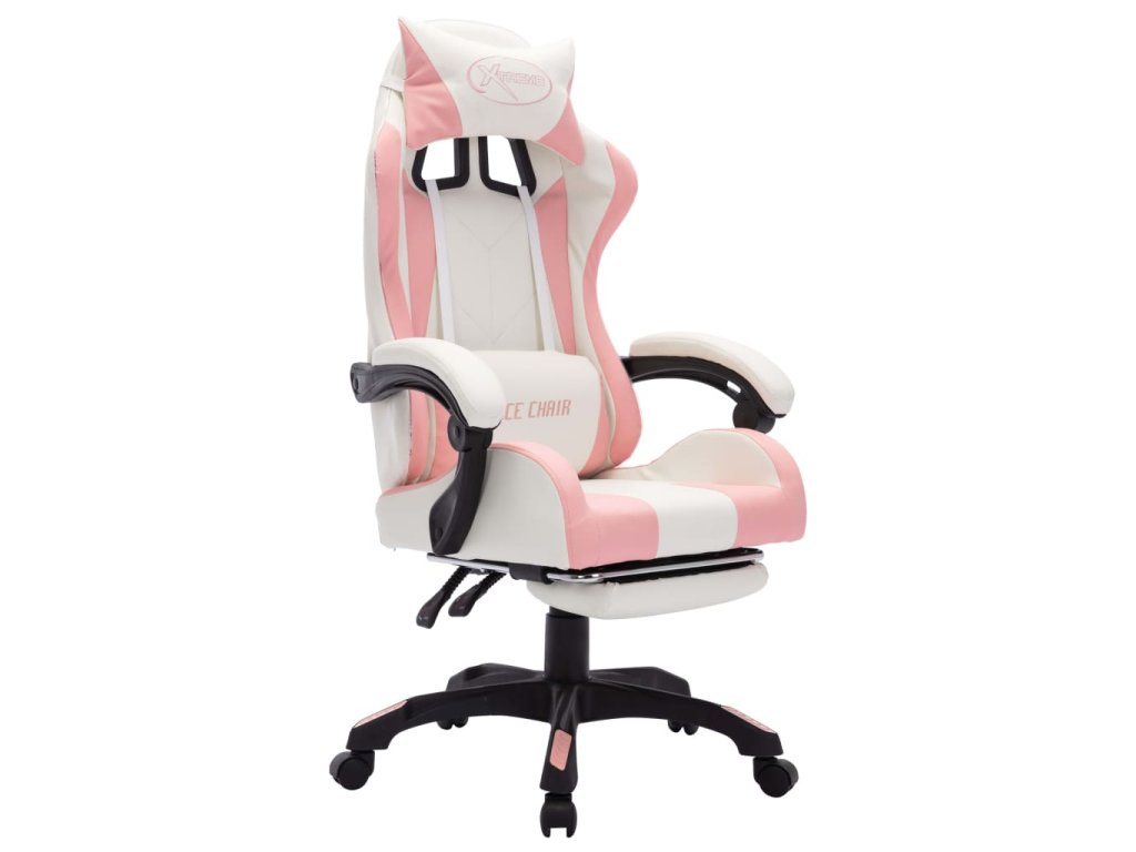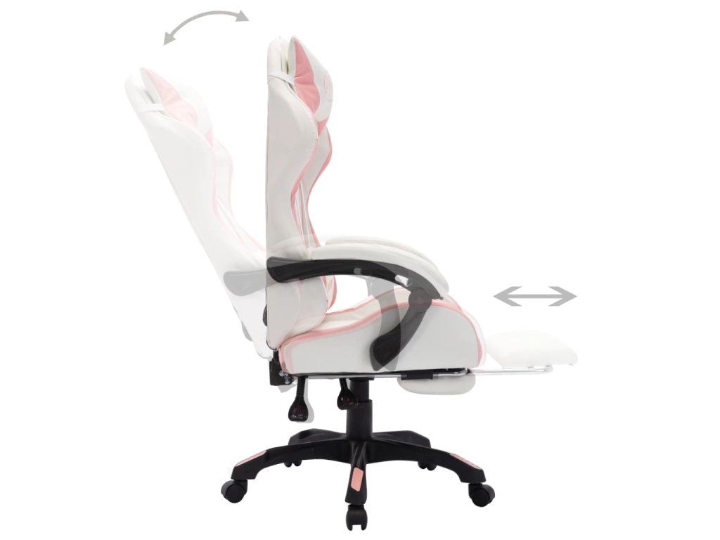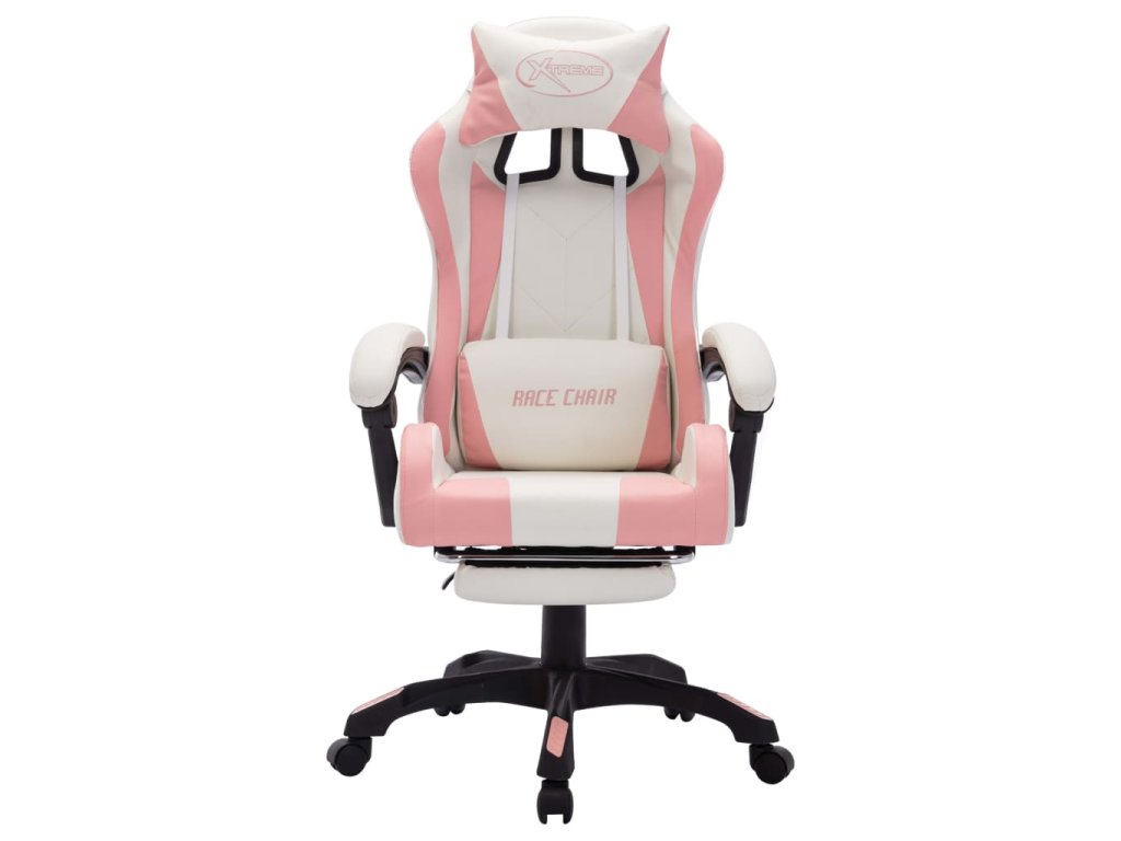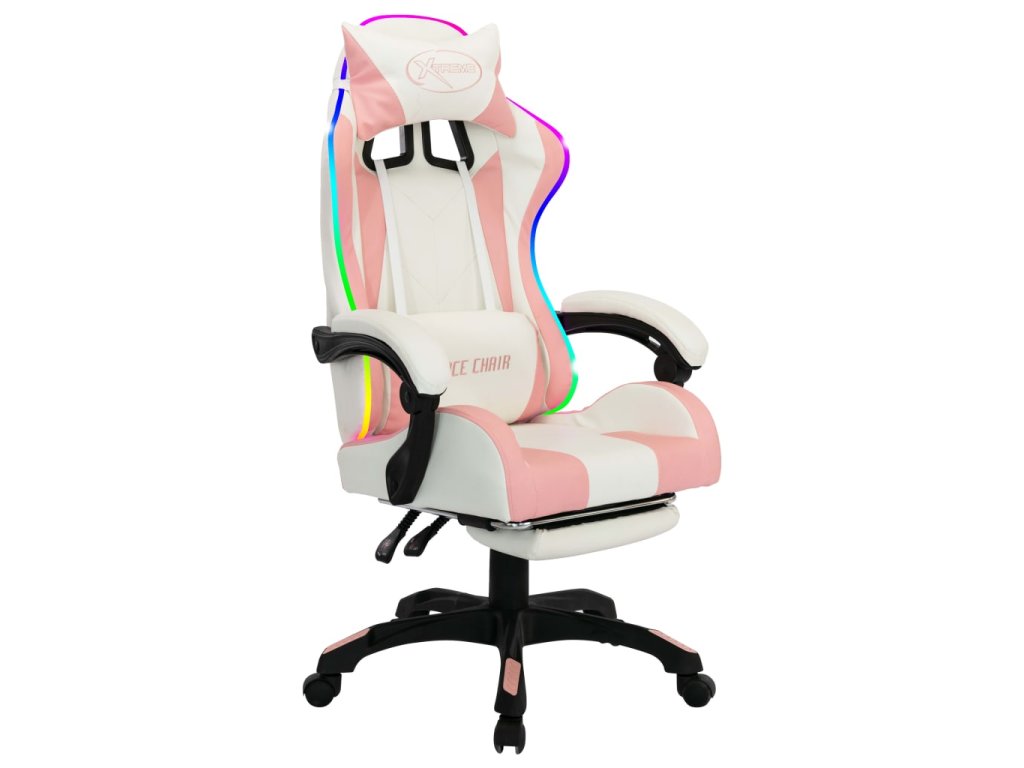 Herní židle s RGB LED podsvícením růžovo-bílá umělá kůže 288014