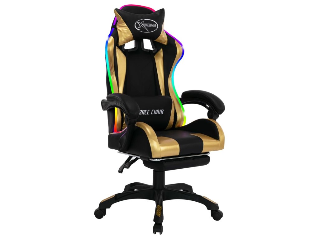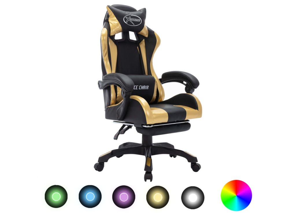 Herní židle s RGB LED podsvícením zlato-černá umělá kůže 288008