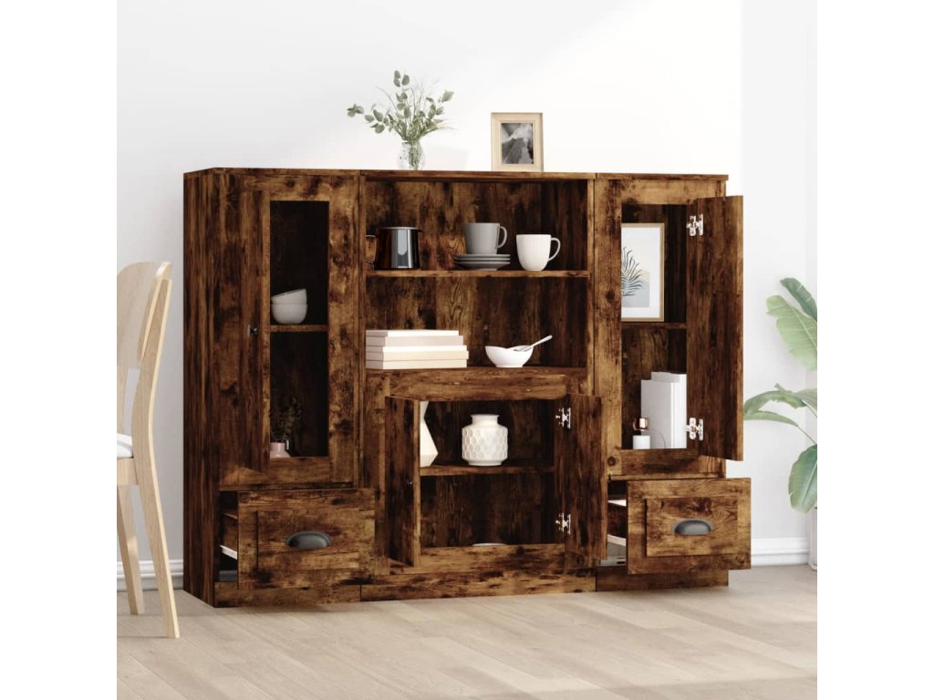 Highboardy 3 ks kouřový dub kompozitní dřevo 3185316