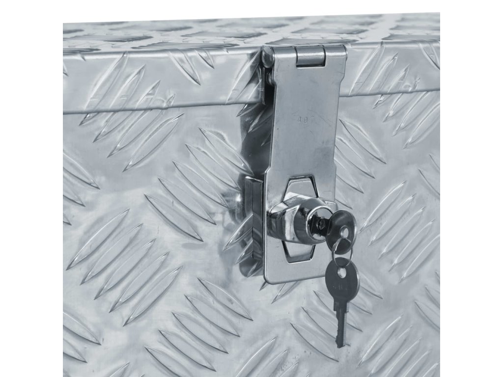 Box je vyroben z vysoce kvalitního slzičkového hliníkového plechu, je voděodolný a jen tak se nepoškodí. Disponuje prostorným vnitřním prostorem, kam si můžete ukládat své nástroje, příslušenství nebo nářadí, a je rovněž vybaven uzamykacím systémem, jenž zajišťuje vyšší bezpečnost (součástí balení jsou 2 klíče).