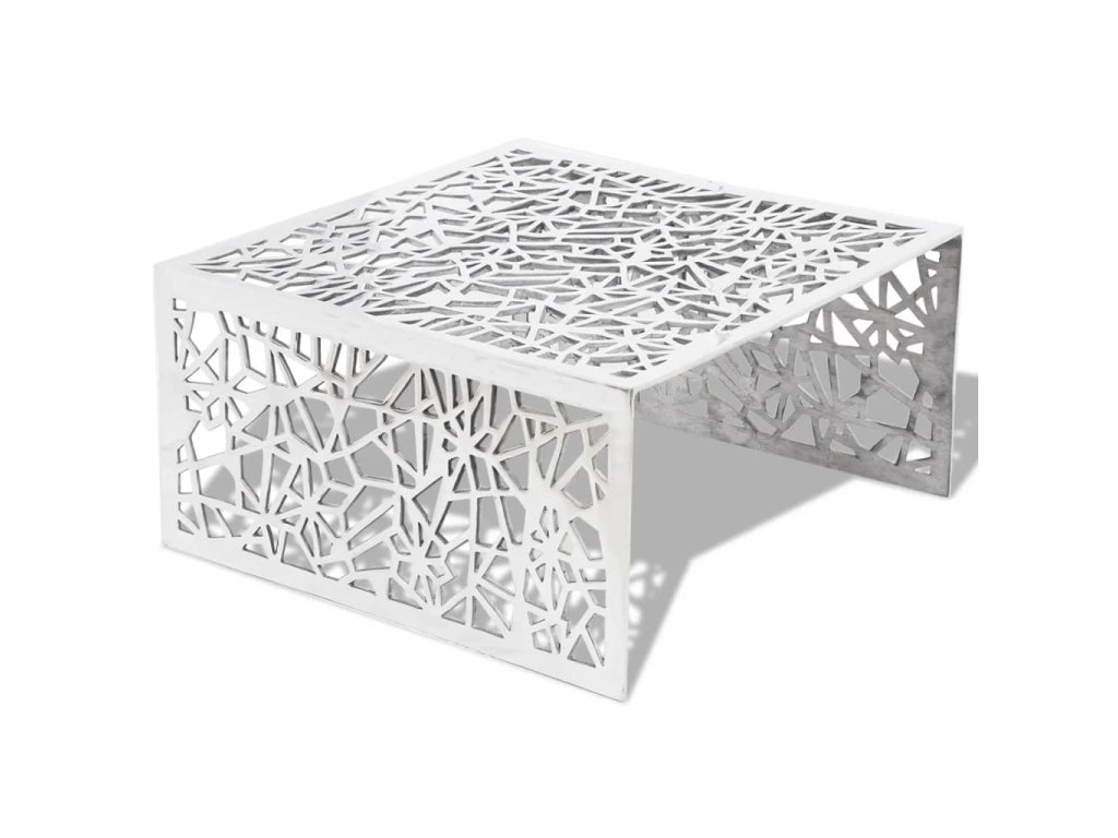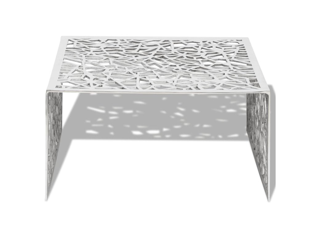 Hliníkový konferenční stolek stříbrný s geometrickým prolamováním 242328