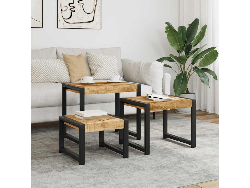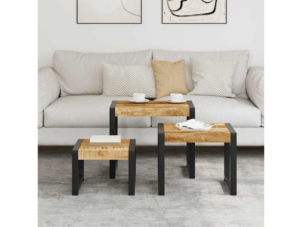 Hnízdové stolky 3 ks masivní mangovníkové dřevo 247404
