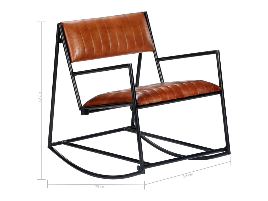 Křeslo je zhotovené z pravé kůže a práškově lakovaného železa, takže vyniká svou odolností a stabilitou. Houpací křeslo můžete umístit v obývacím pokoji nebo ložnici, abyste se mohli začíst do knihy nebo si vychutnali šálek kávy.