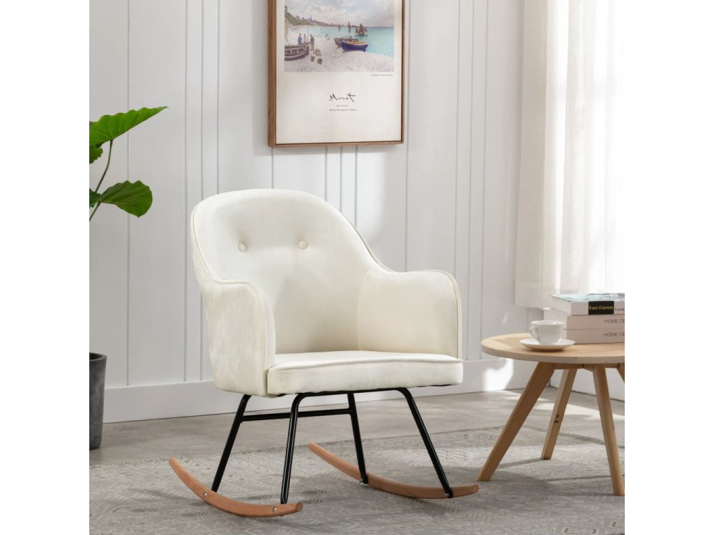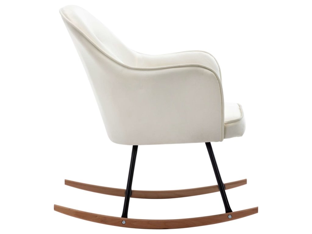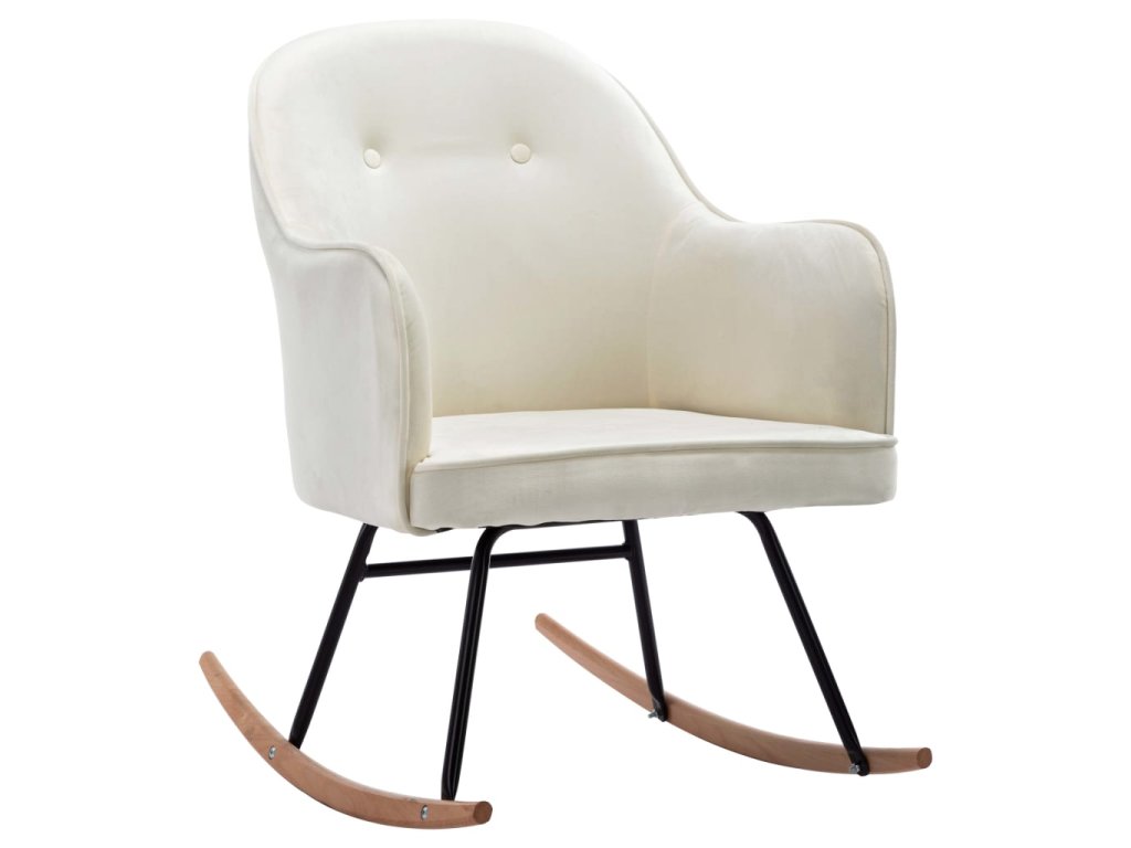 Houpací křeslo je čalouněné sametovým materiálem a je vyrobené z práškově lakovaného železného rámu, a proto je stabilní a zároveň měkké. Silně polstrovaný sedák zaručuje extra pohodlí při odpočinku v tomto houpacím křesle. Nohy z bukového dřeva navíc zajišťují vysokou stabilitu. Křeslo, designované s dlouhými houpacími nohami, se jen tak nepřeklopí.