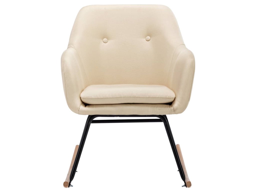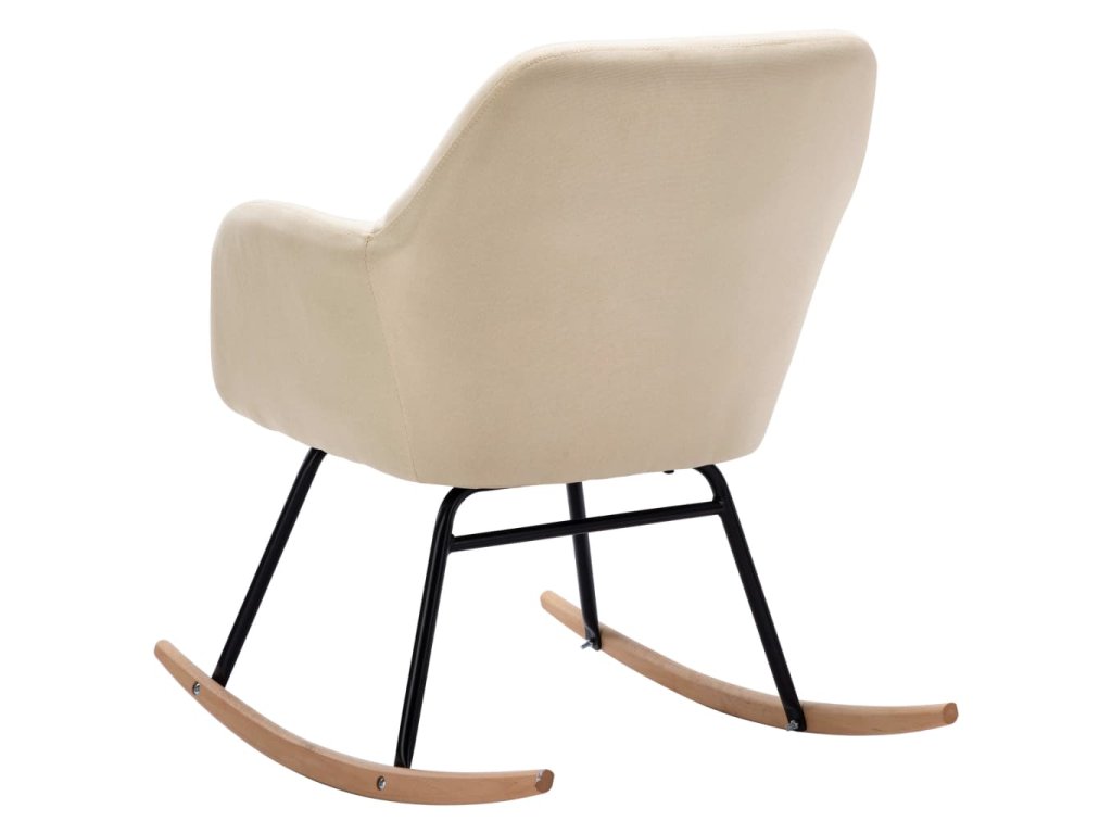 Houpací křeslo je čalouněné měkkým textilem a je vyrobené z práškově lakovaného kovového rámu, a proto je stabilní a zároveň měkké. Silně polstrovaný sedák, který je odmítelný a snadno se čistí, zaručuje extra pohodlí při sezení. Nohy z bukového dřeva navíc zajišťují vysokou stabilitu. Křeslo, designované s dlouhými houpacími nohami, se jen tak nepřeklopí.