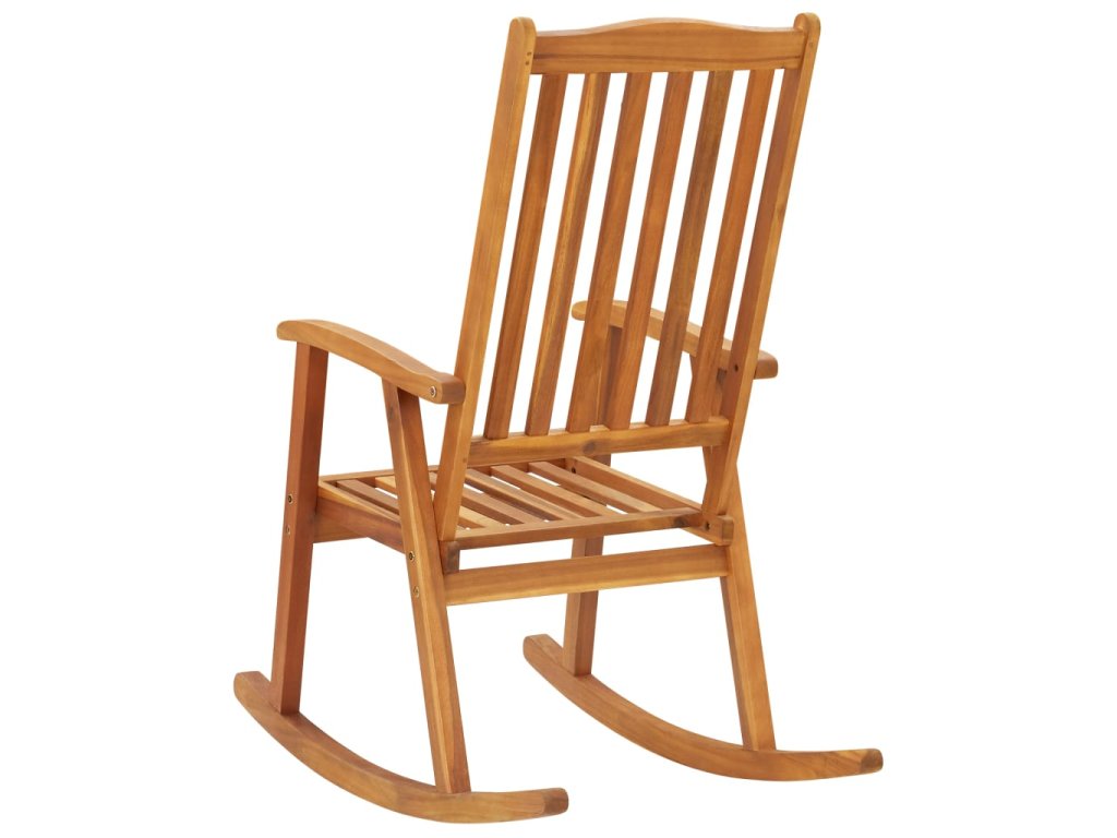 Toto houpací křeslo z masivního akáciového dřeva má výjimečnou odolnost a výborně vzdoruje klimatickým podmínkám. Vysoké opěradlo zvyšuje pohodlí při sezení. Houpací křeslo můžete umístit do obývacího pokoje nebo na venkovní terasu a užívat si příjemné chvíle s knihou a šálkem kávy.